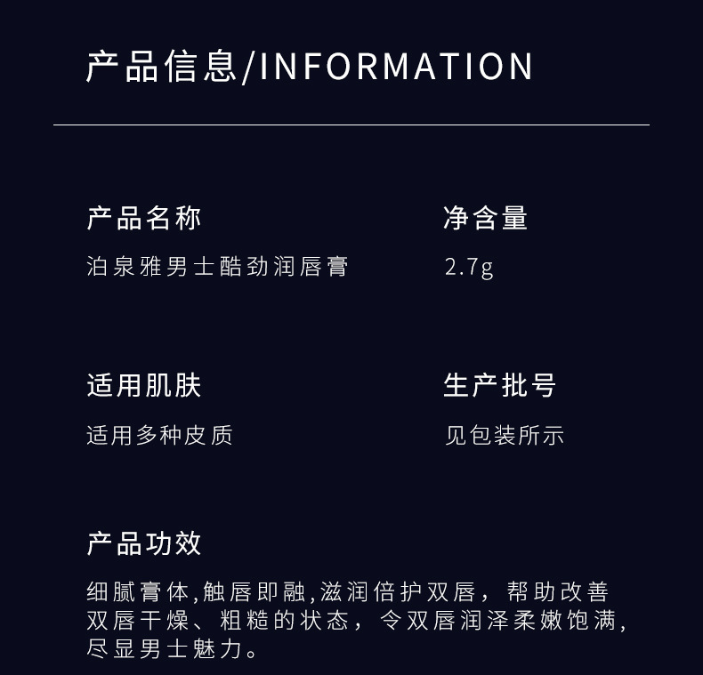 泊泉雅男性潤唇膏クール感潤い保湿改善乾燥裂保護淡化唇紋男性唇膏