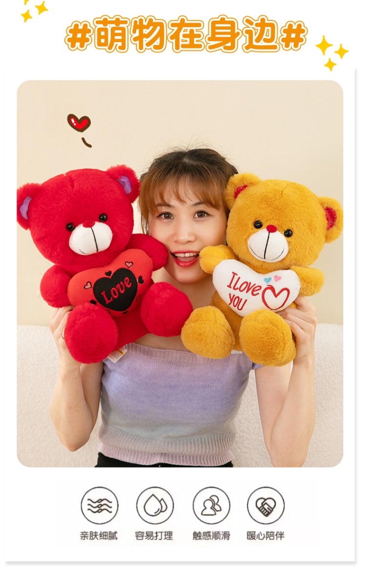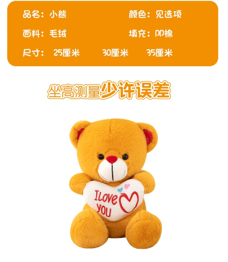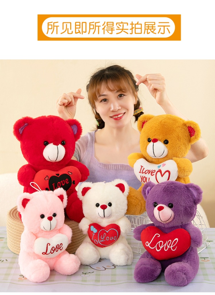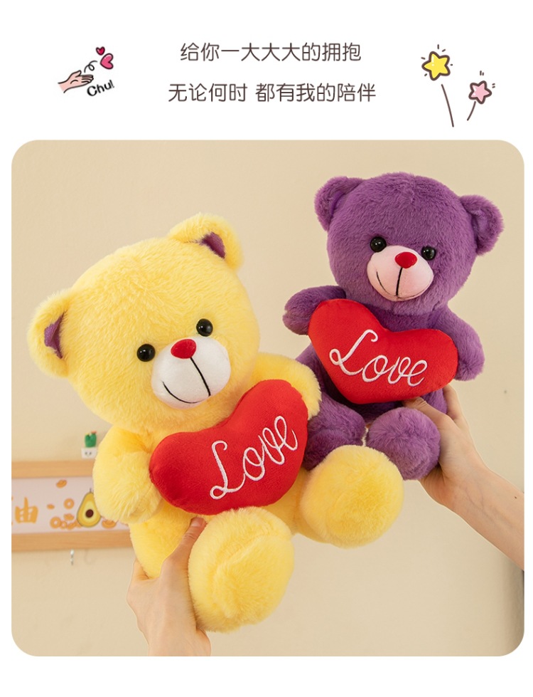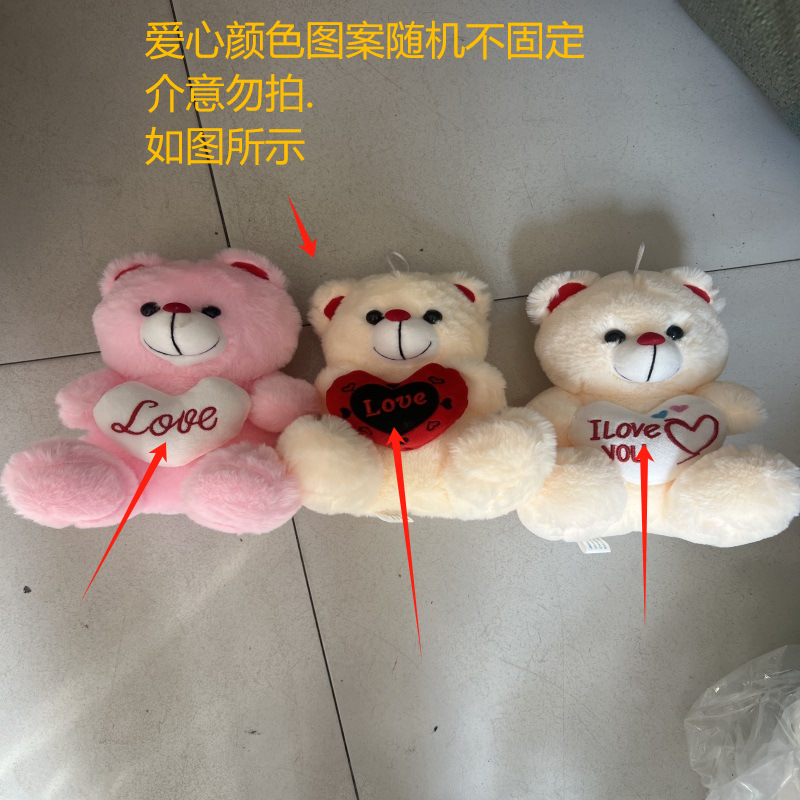小熊抱的爱心颜色与款式不固定.随机配的.介意的客户请勿下单.拍下后就默认此说明.爱心款式颜色随机.
