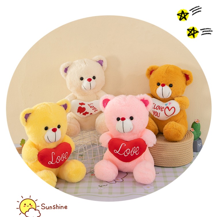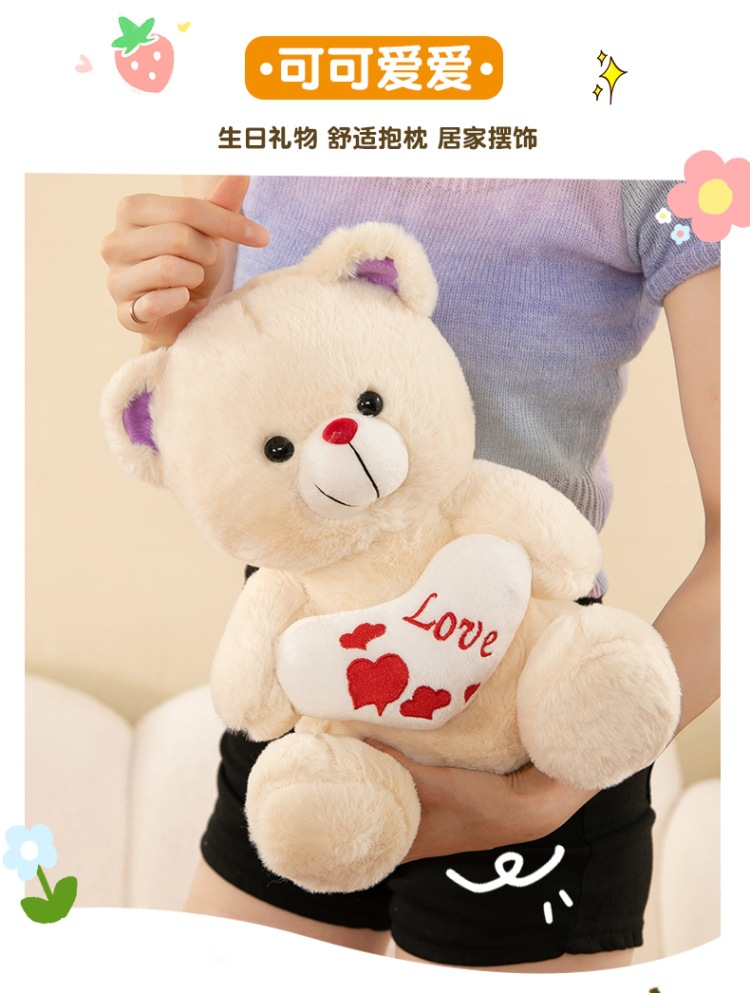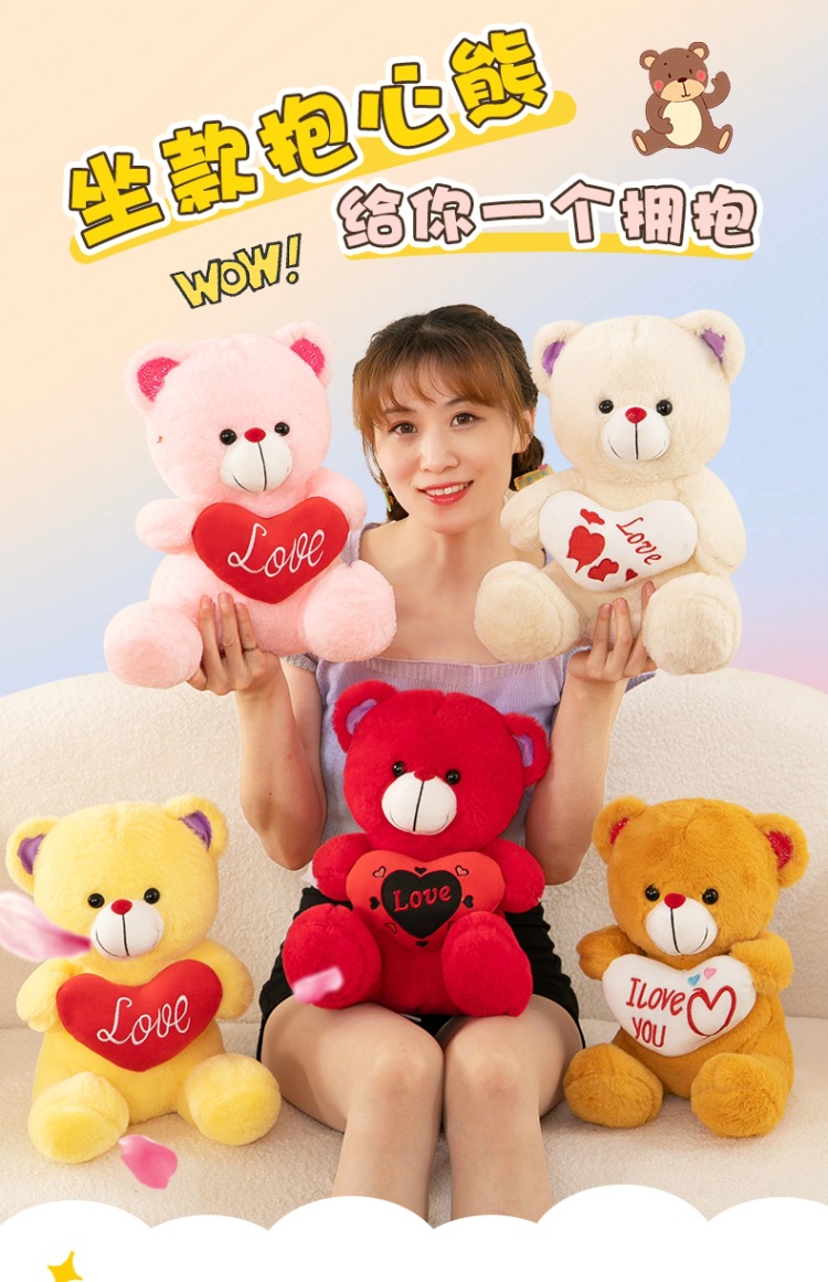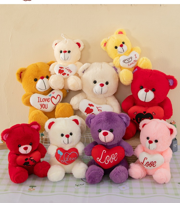 小熊抱的爱心颜色与款式不固定.随机配的.介意的客户请勿下单.拍下后就默认此说明.爱心款式颜色随机.