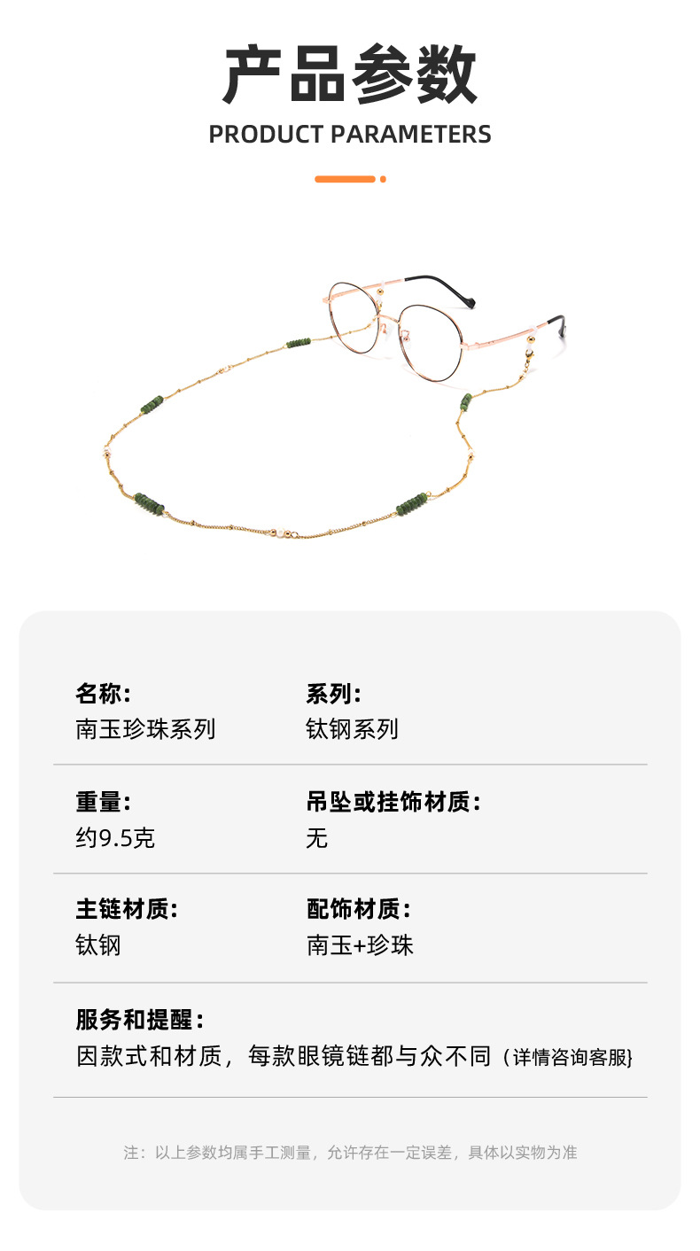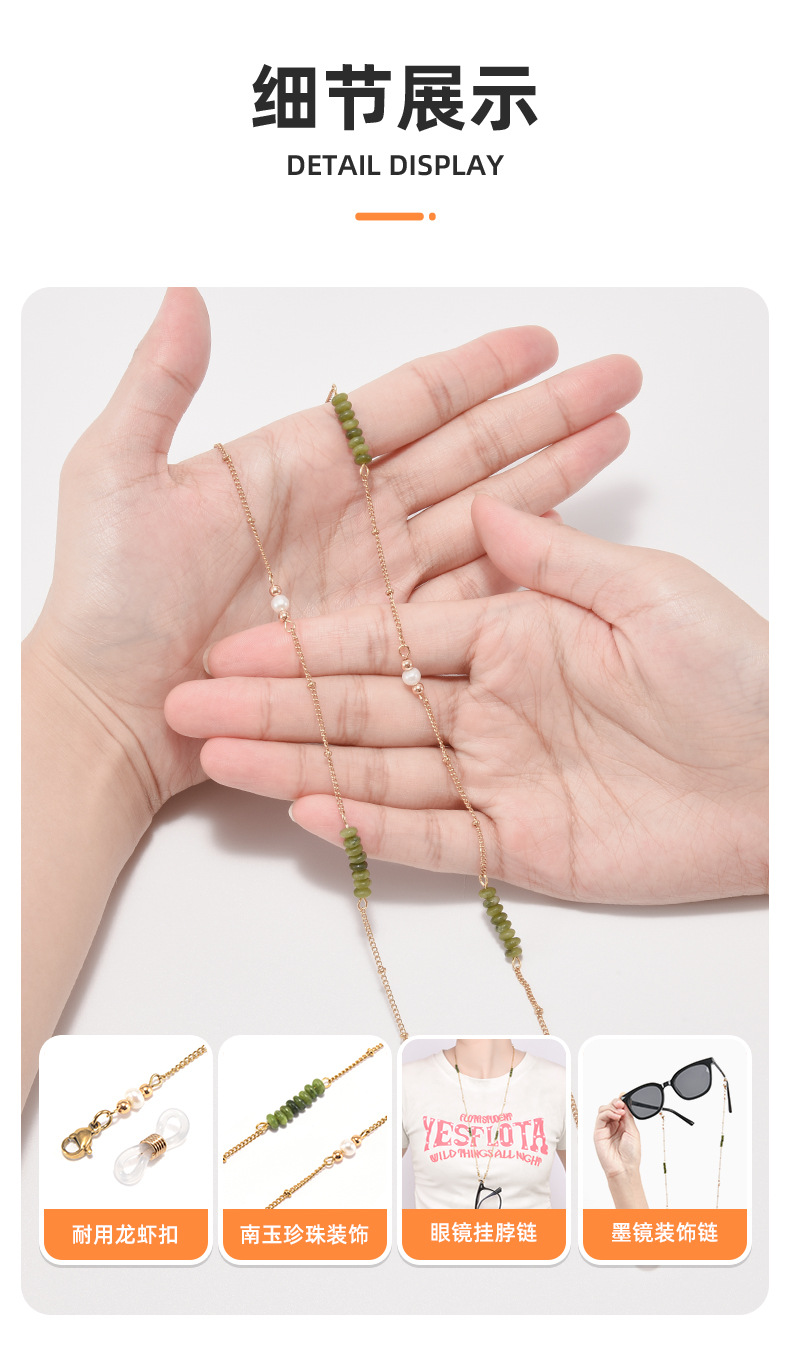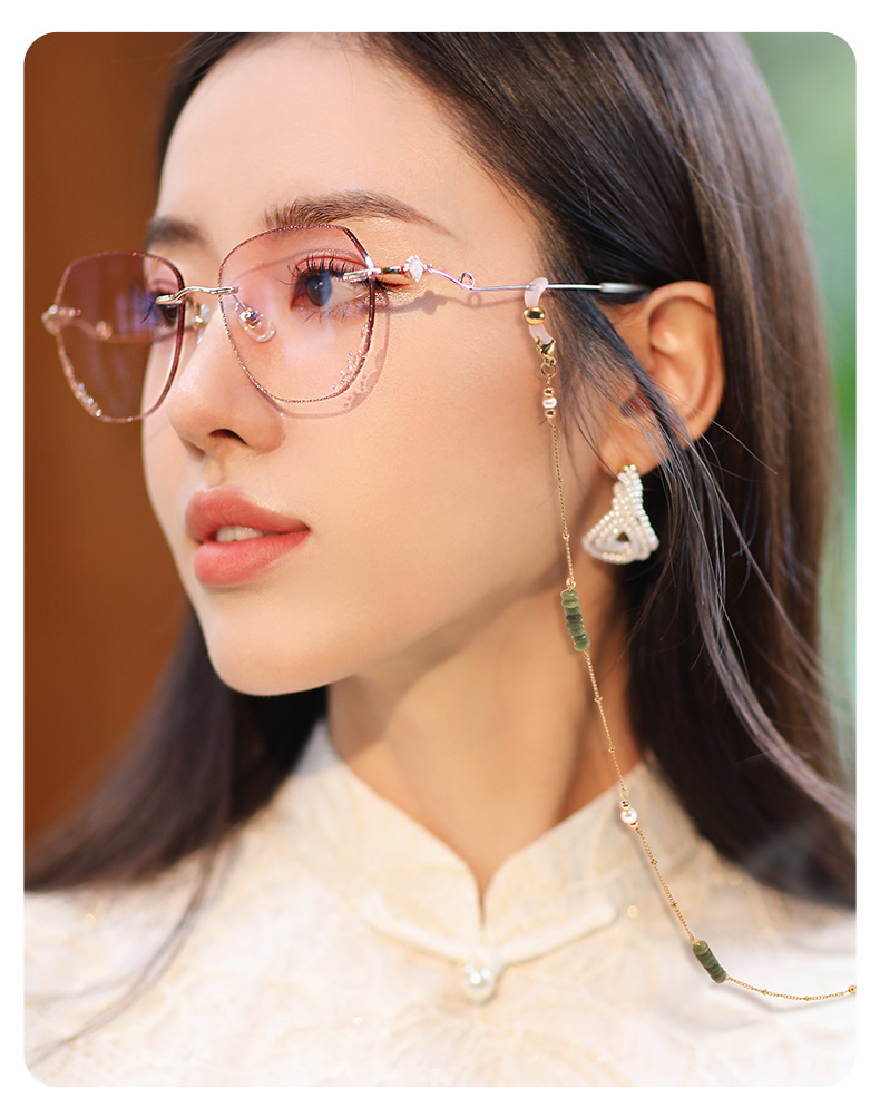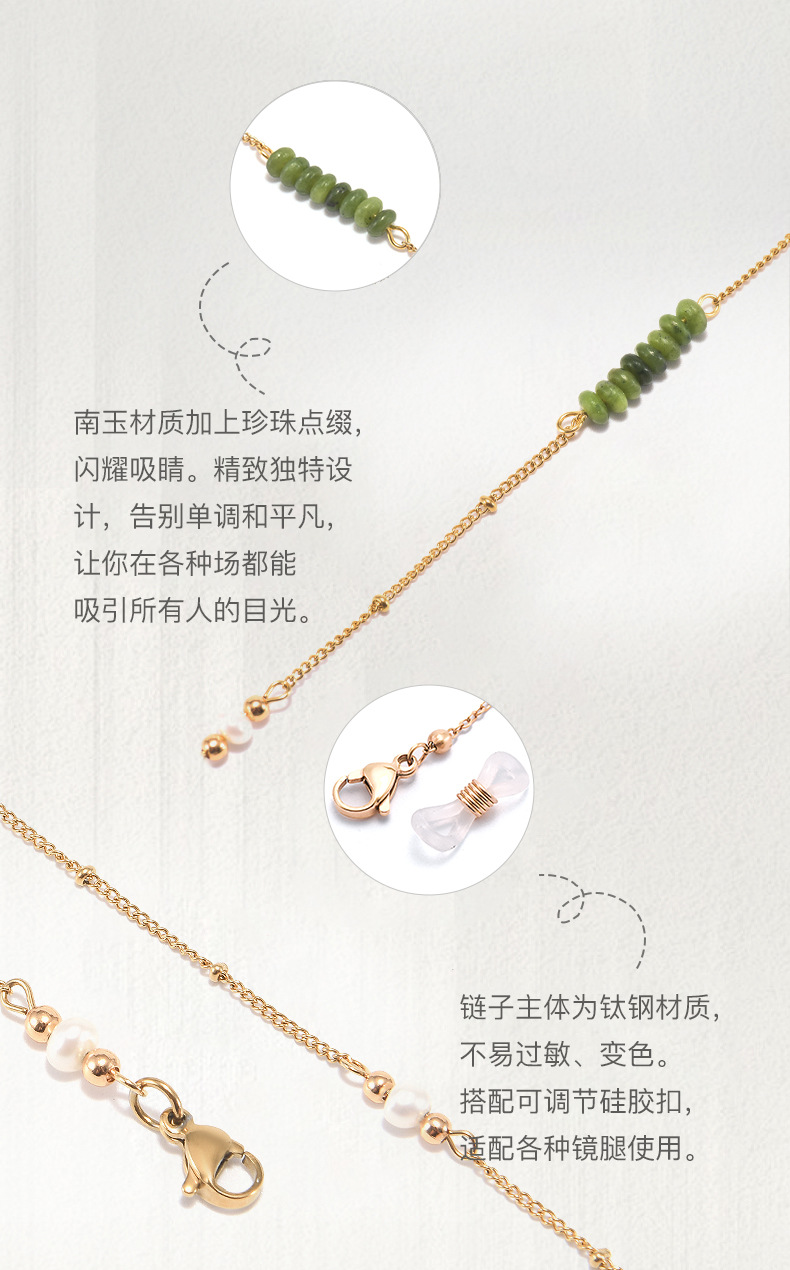 新中国風メガネチェーンの復古チタン鋼は色を落とさない南玉真珠近視鏡サングラスの首のチェーンのマスクチェーンを掛けます。
