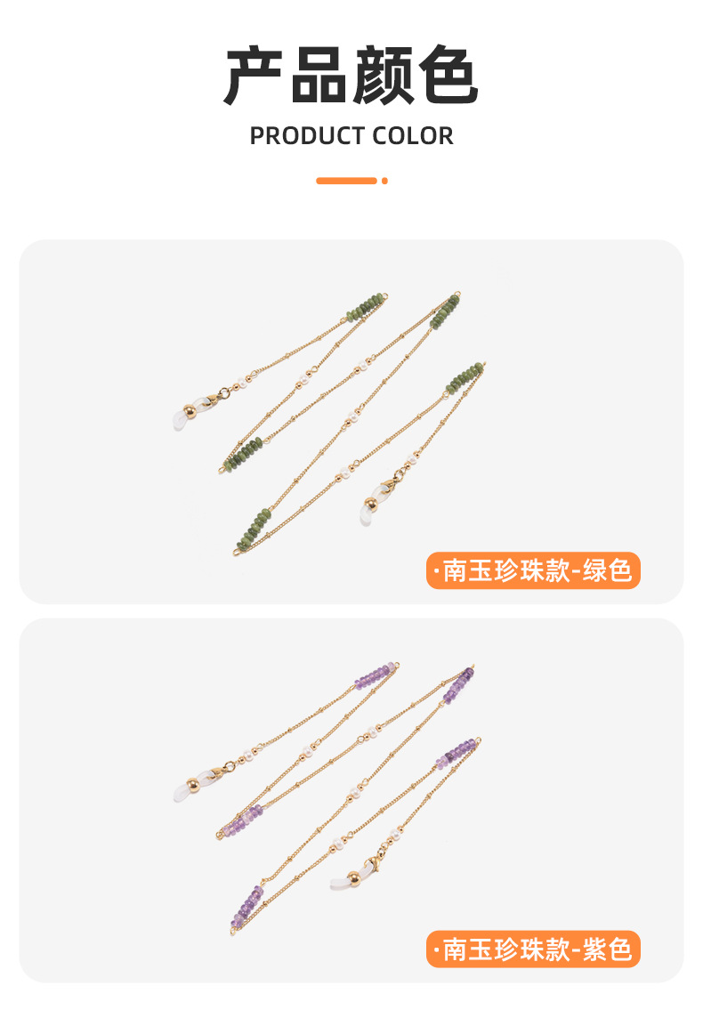 跨境亚马逊热销时尚尖晶石藏银玛瑙眼镜挂绳眼镜链口罩链防丢挂绳