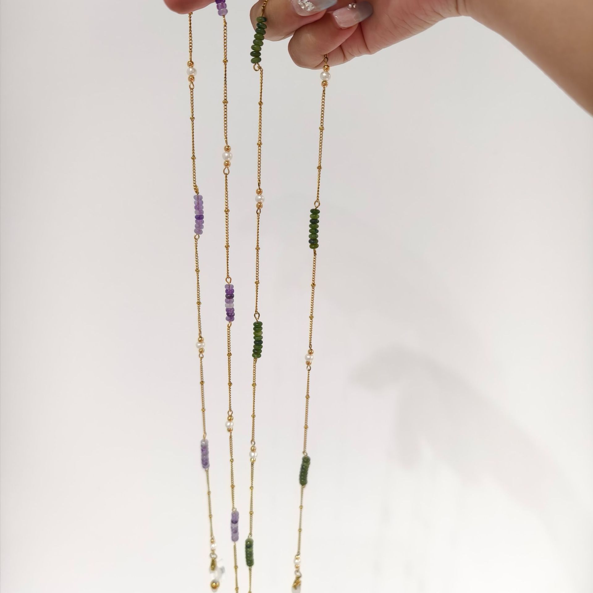 海蓝宝橙太阳石天然石手工串珠眼镜链条切面珠挂脖项链手链气质链
