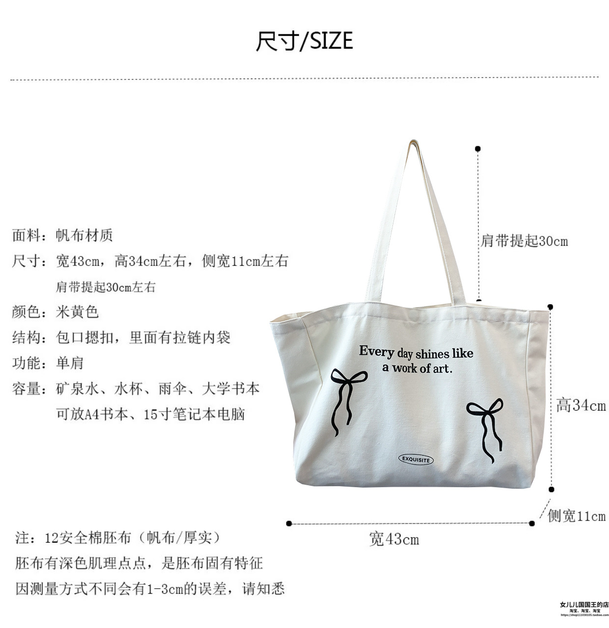 キャンバスバッグ女性シングル肩授業大学生装本ins韓風ファスナー付き文芸デザイン感手提げキャンバスバッグ