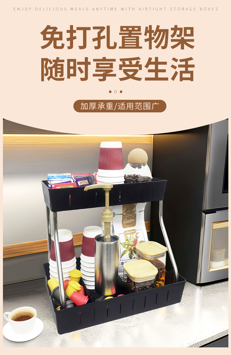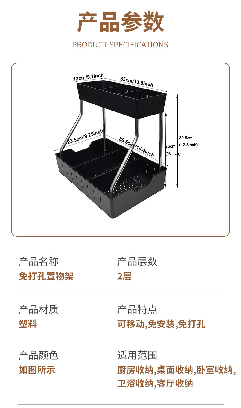 クロスボーダー水槽下収納ラック キッチン用 穴あけ不要 浴室収納ラック 化粧品収納 二層式
