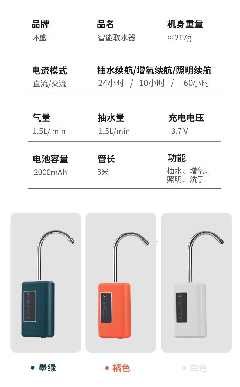 野营者智能感应钓鱼取水器抽水泵增氧泵多功能抽水机吸水洗手神器