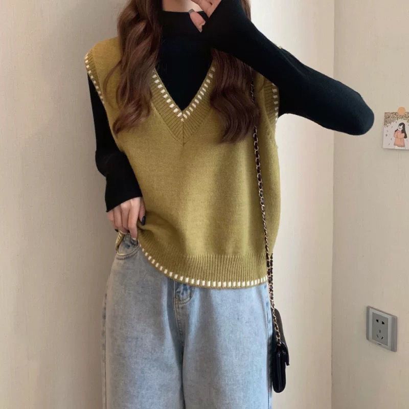 韓国のレトロなショートニットのベスト