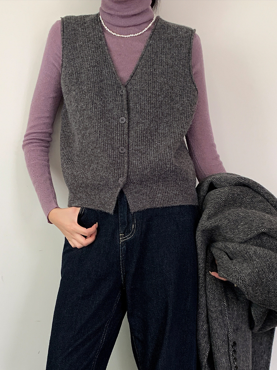 衣尔衫 高级奶奶灰 少女感软糯质感针织马甲女百搭气质坎肩上衣
