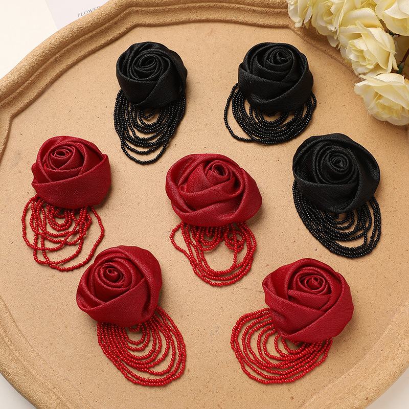 優しい気質タッセルライスビーズ生地バラのつぼみ diy 多用途ヘアロープ頭飾りコサージュ衣類花アクセサリー