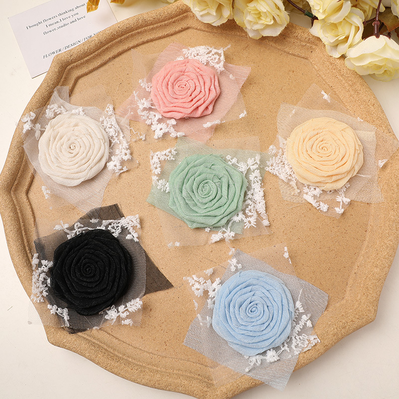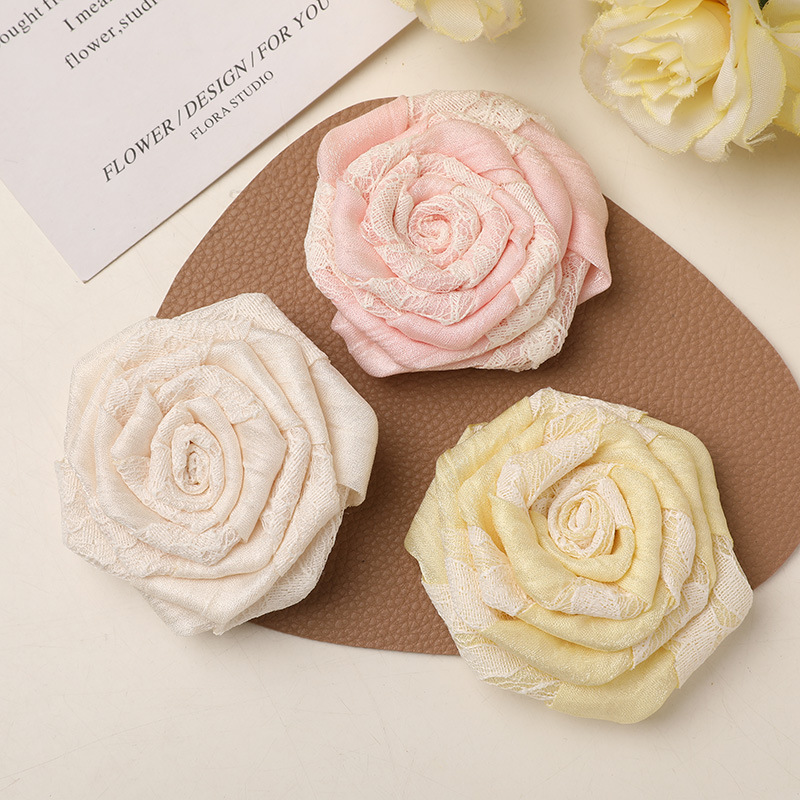 甘いドルガールクリームレースメッシュローズ diy ロールフラワーヘアロープ胸花レースクリップネックレス女性のアクセサリー