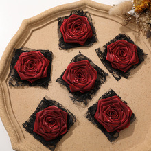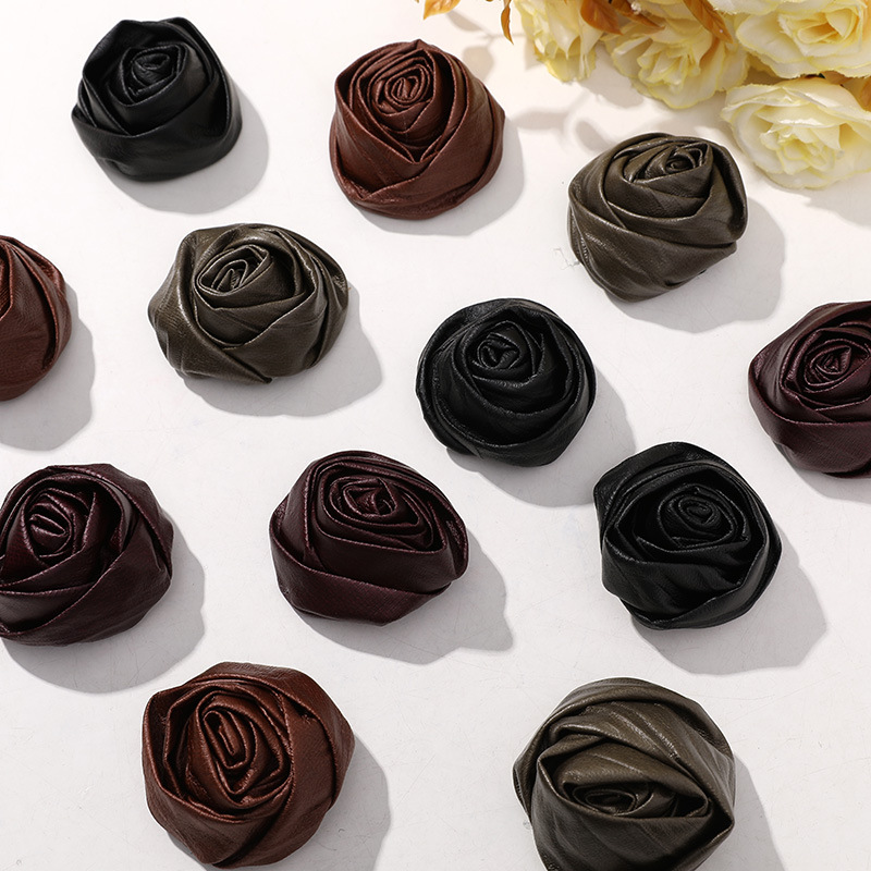 美拉德玫瑰秋冬氛围感皮质花苞diy甜辣少女卷花边夹发圈服饰配件