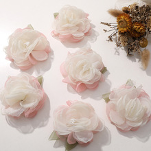 お姫様の髪飾り欧根紗の薄い桃の粉の花diy手作りの布芸のヘアピンのイヤリングの材料の卸売り