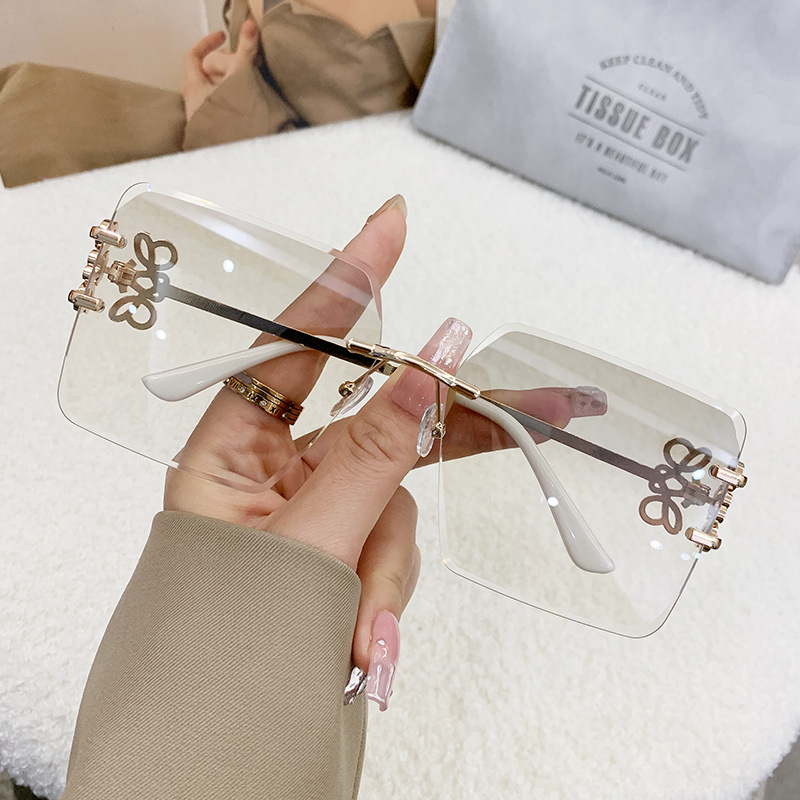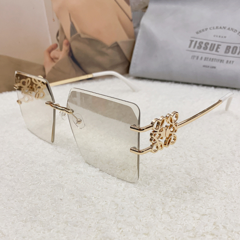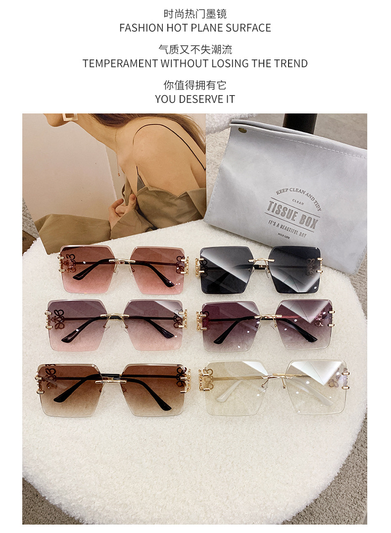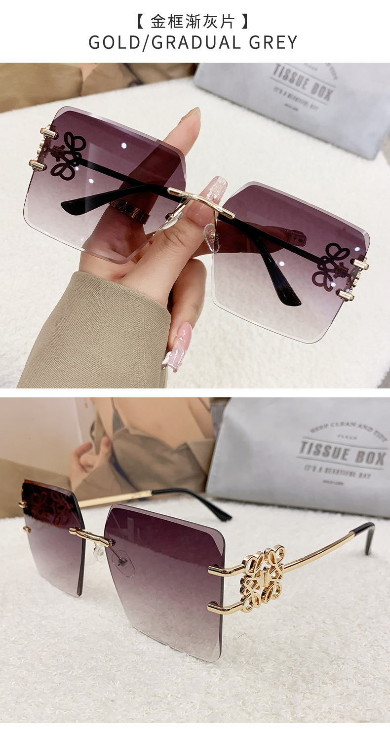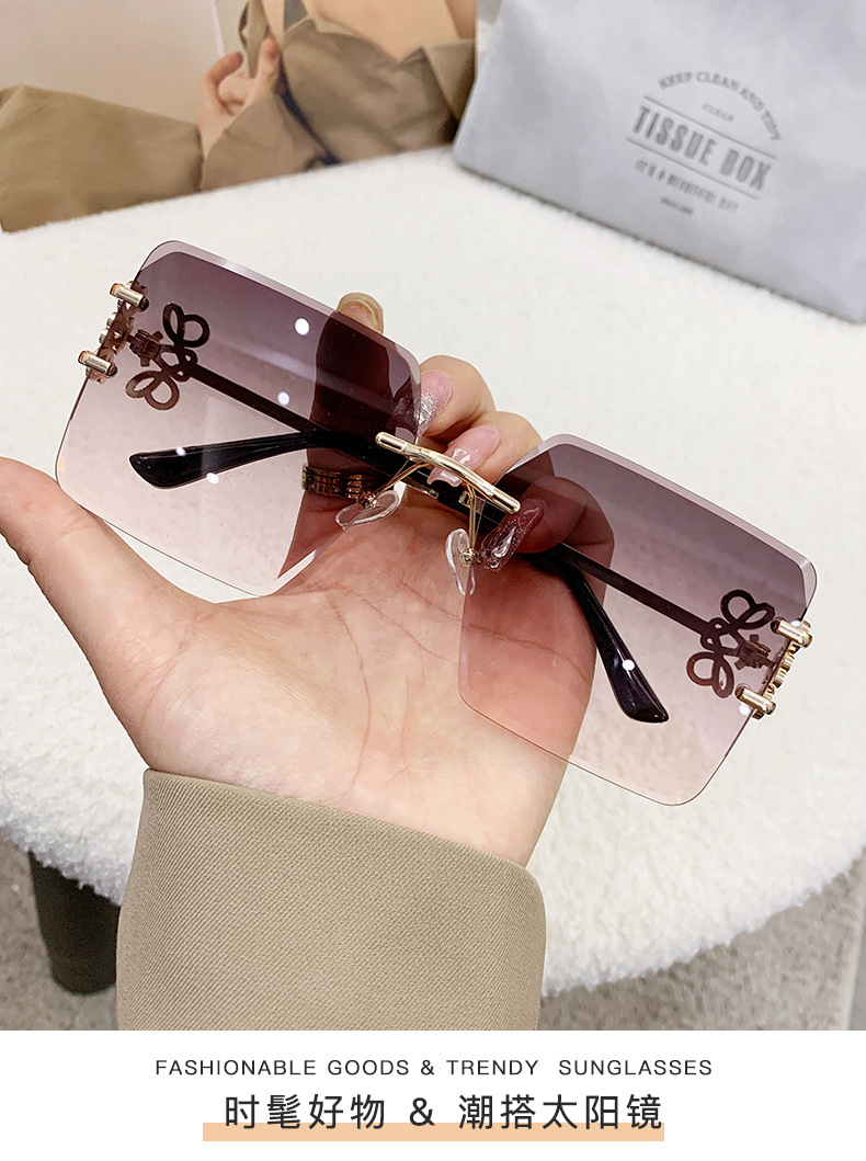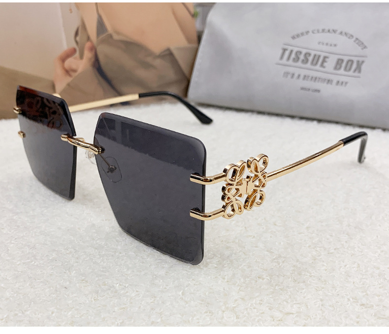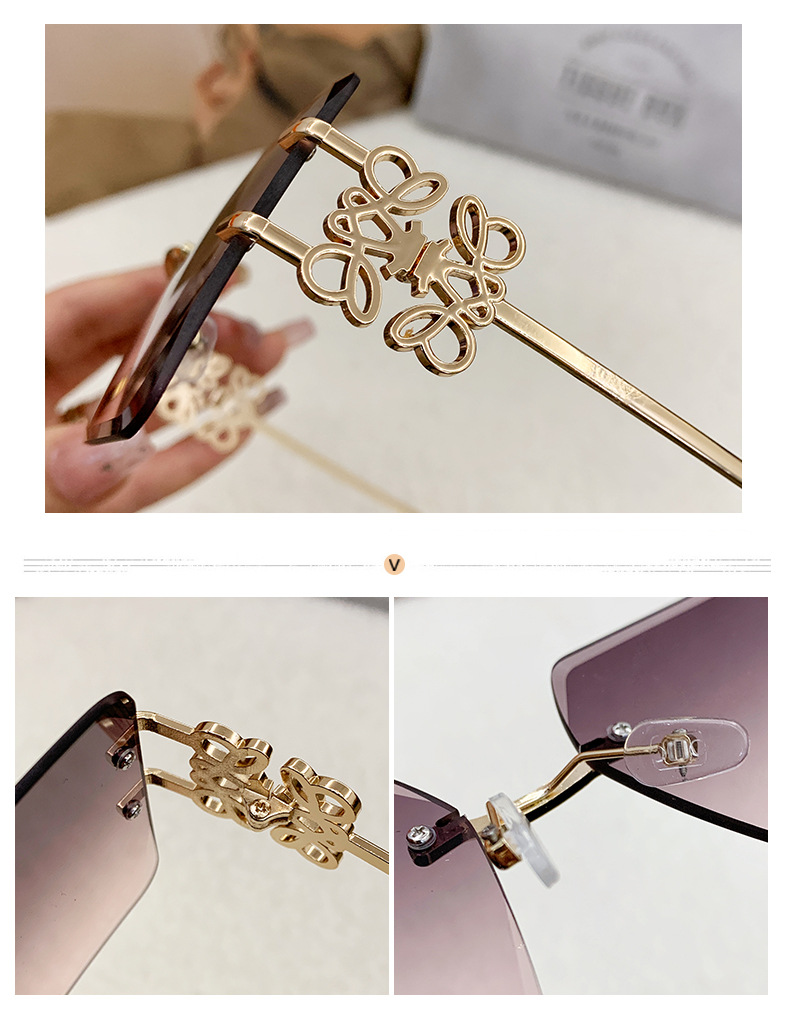 国境を越えた新型縁なしサングラス金属角形表裏文字Fサングラスメーカー直販ins