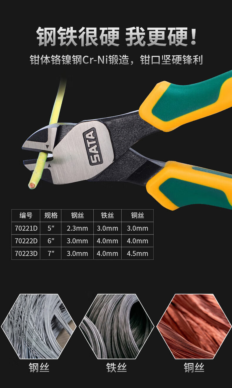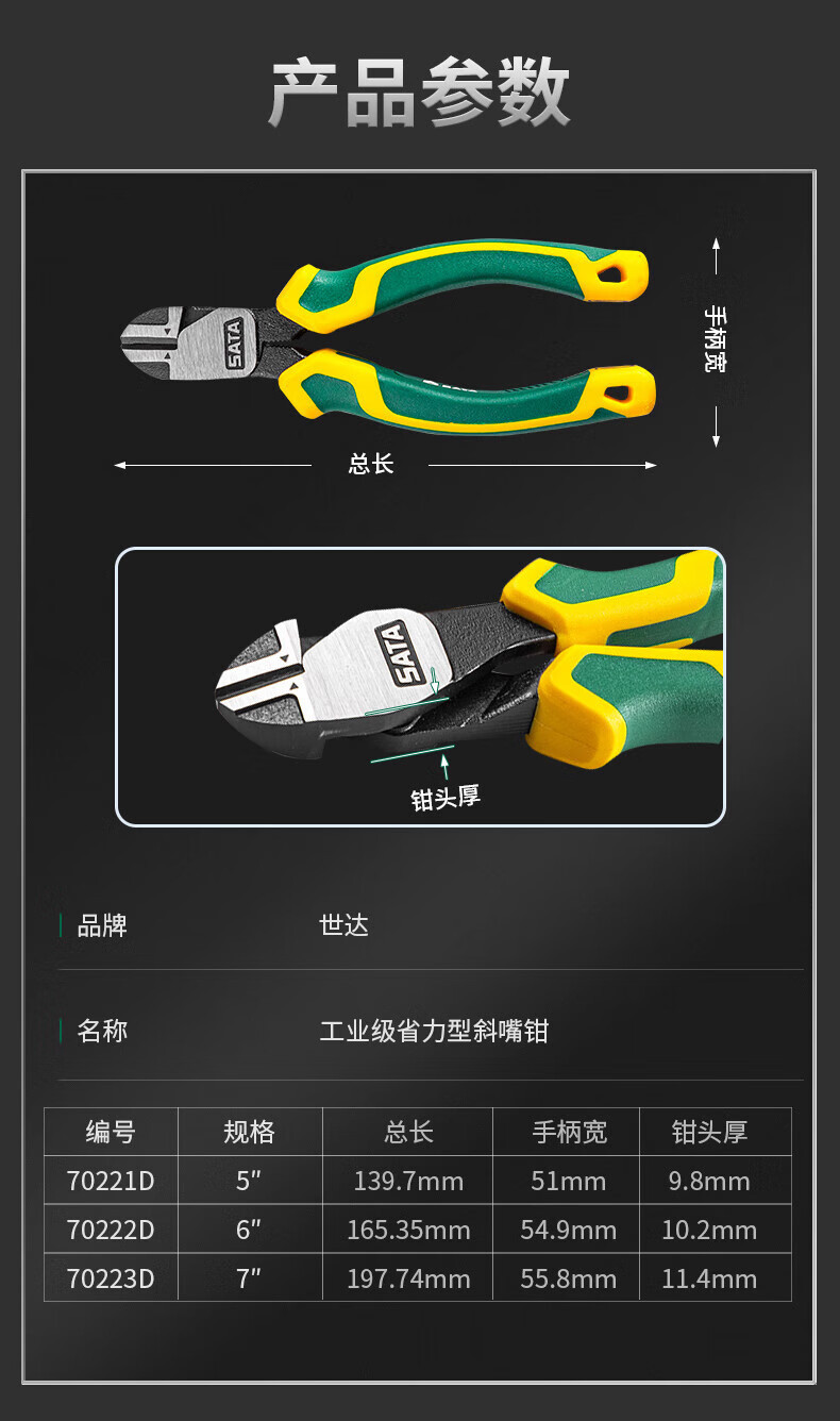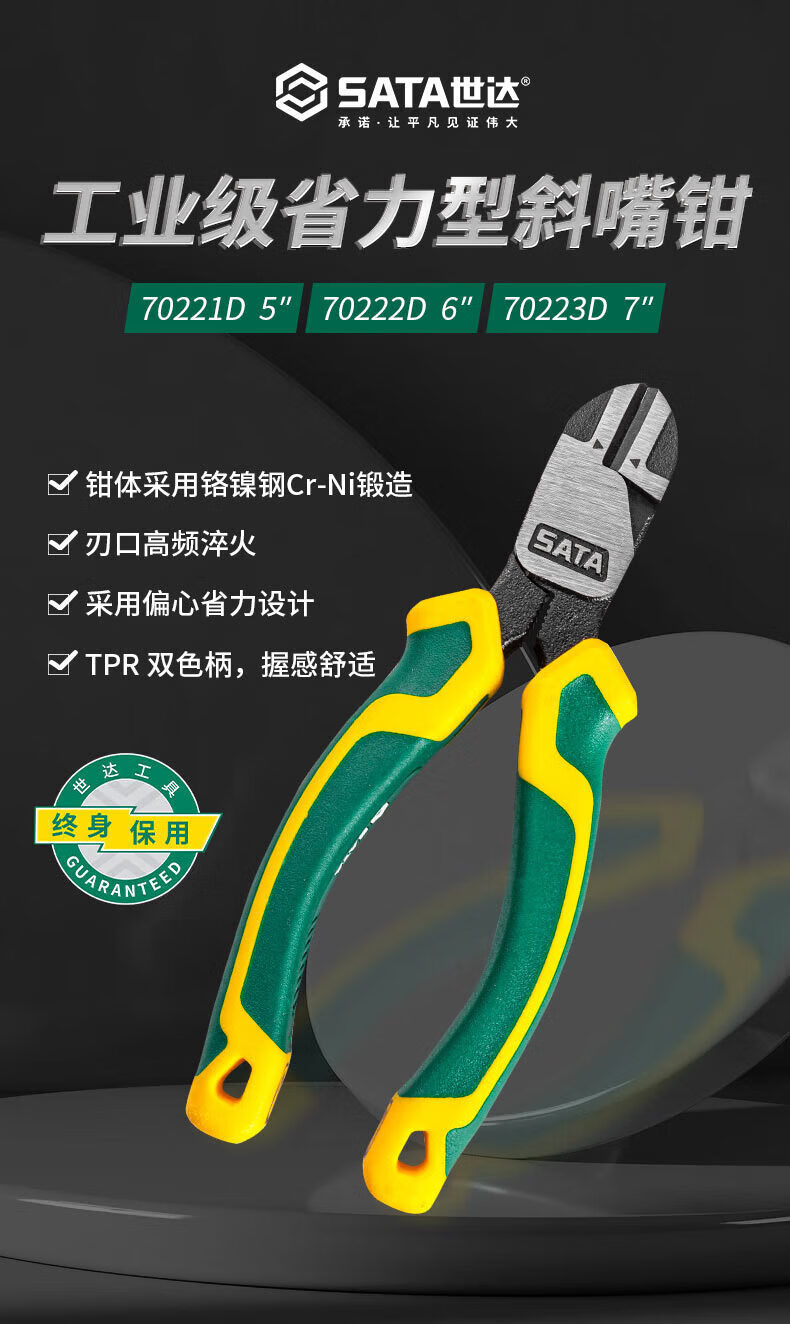 世達SATA 70221D工業級省力型斜め口鉗子5インチ