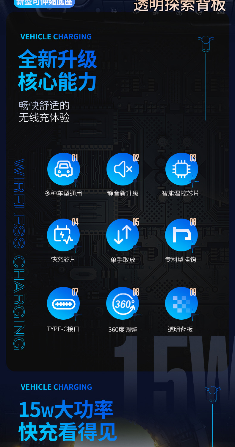 2025新款车载手机架支架汽车导航专用 15W车载无线充电器车载厂家