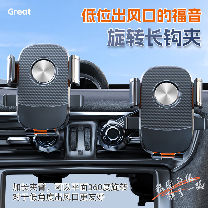 重力吹出口ナビゲーション車載携帯電話スタンド新型汎用自動車アルミニウム合金フックサポート携帯電話スタンド
