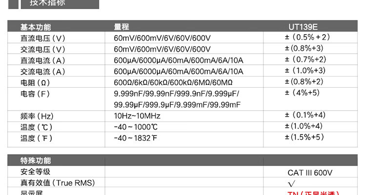 優利徳UNI-T UT139Eデジタルマルチメーター真の有効値万能メーター