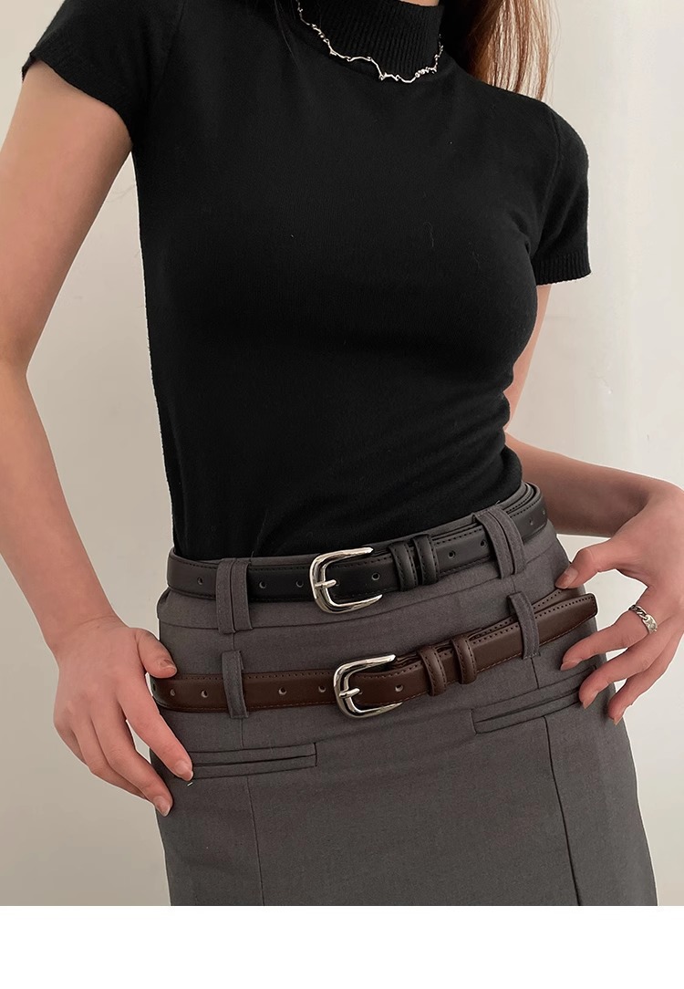 韓国東大門2025年新作韓国風黒色ミニベルト穴なし女子学生用バックルベルト柔らかい穴あけ不要