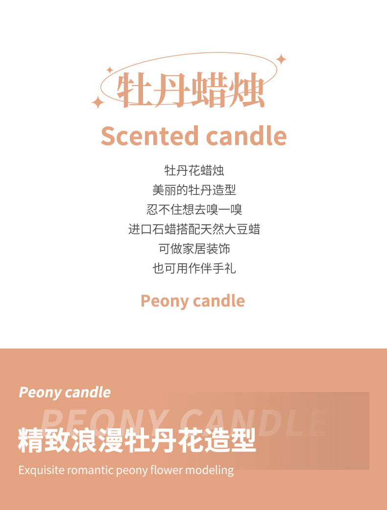 牡丹花香薰蜡烛母亲节妇女节礼物创意花朵造型摆件香氛手工玫瑰