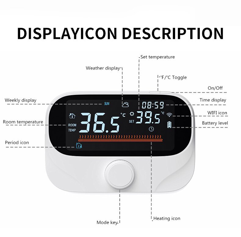 新しいスマートWiFiサーモスタット、Tuya電気床暖房サーモスタット、プログラミング機能付き、連動機能付きスマート床暖房サーモスタット