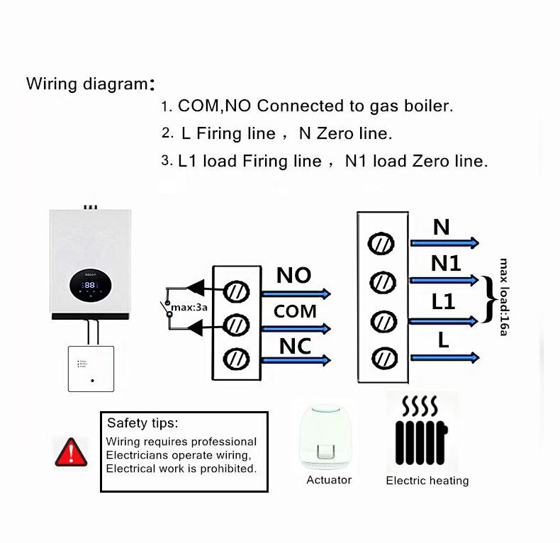 Tuya APP WiFi対応壁掛け式暖房ボイラー温度調節器、ワイヤレス1対1水式暖房ボイラー(連動機能付き)