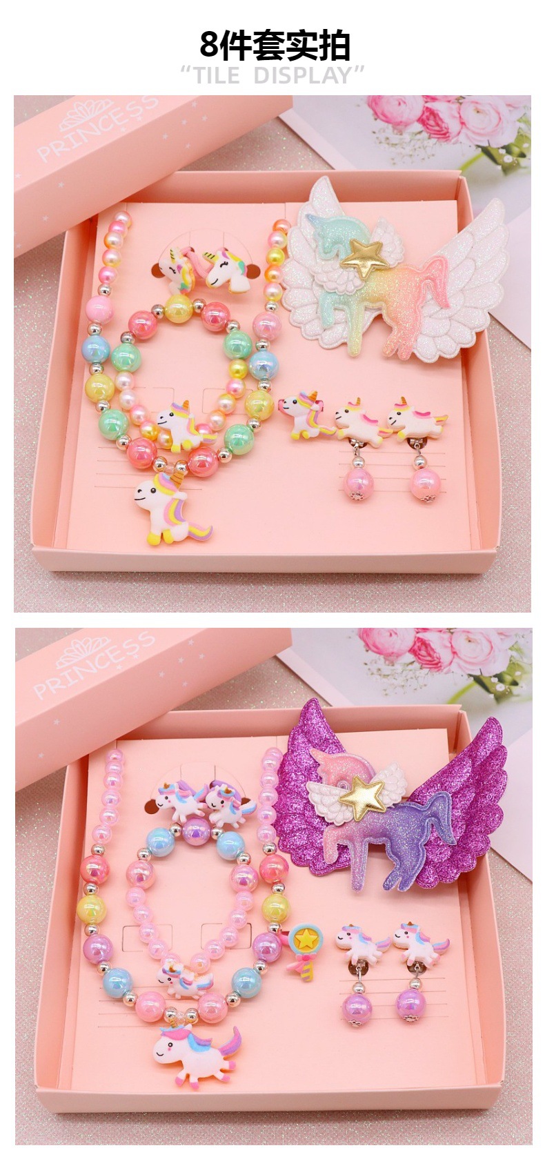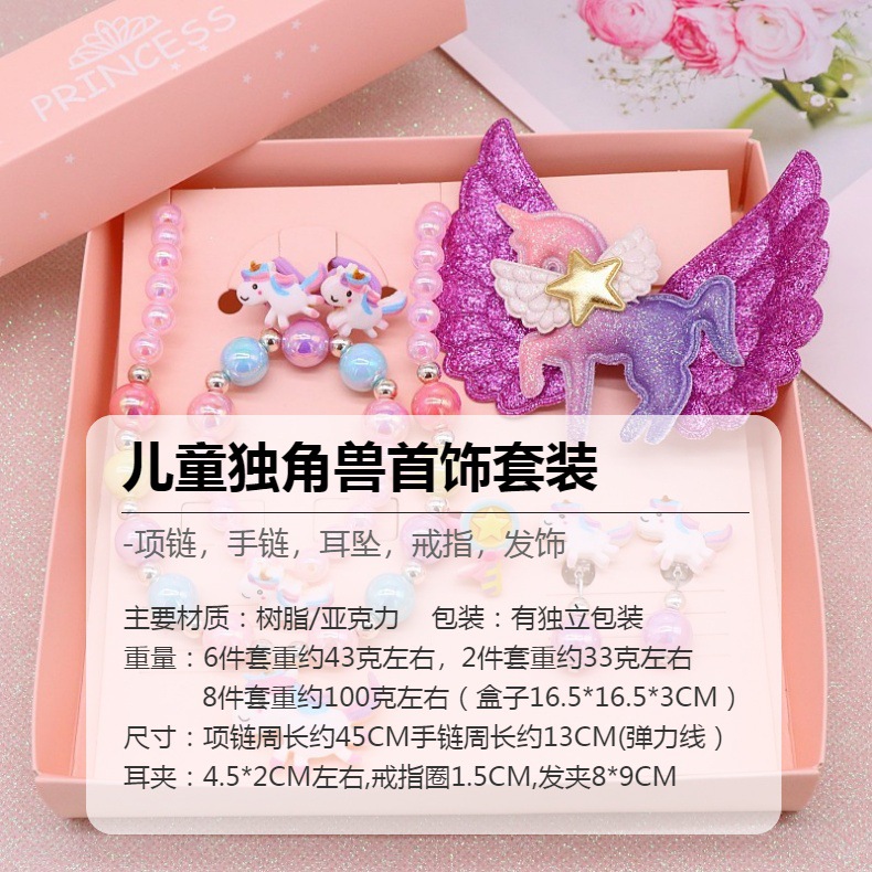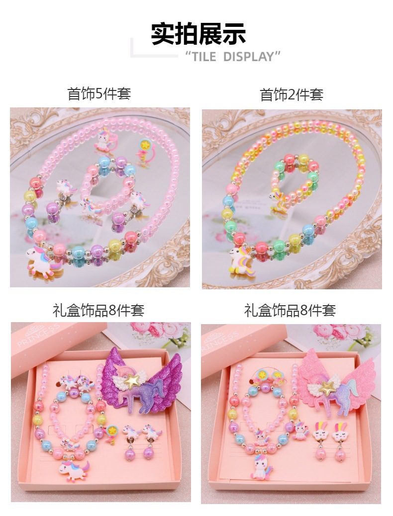 马年儿童饰品女童首饰套装可爱独角兽项链手链耳夹戒指卡通配饰