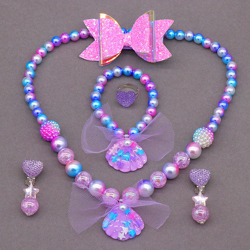 子供用プリンセスネックレスブレスレットアクセサリーセットマーメイド貝殻模造真珠ネックレス女の子水着アクセサリー