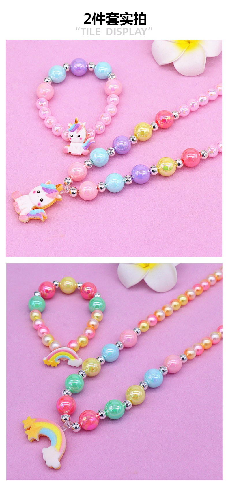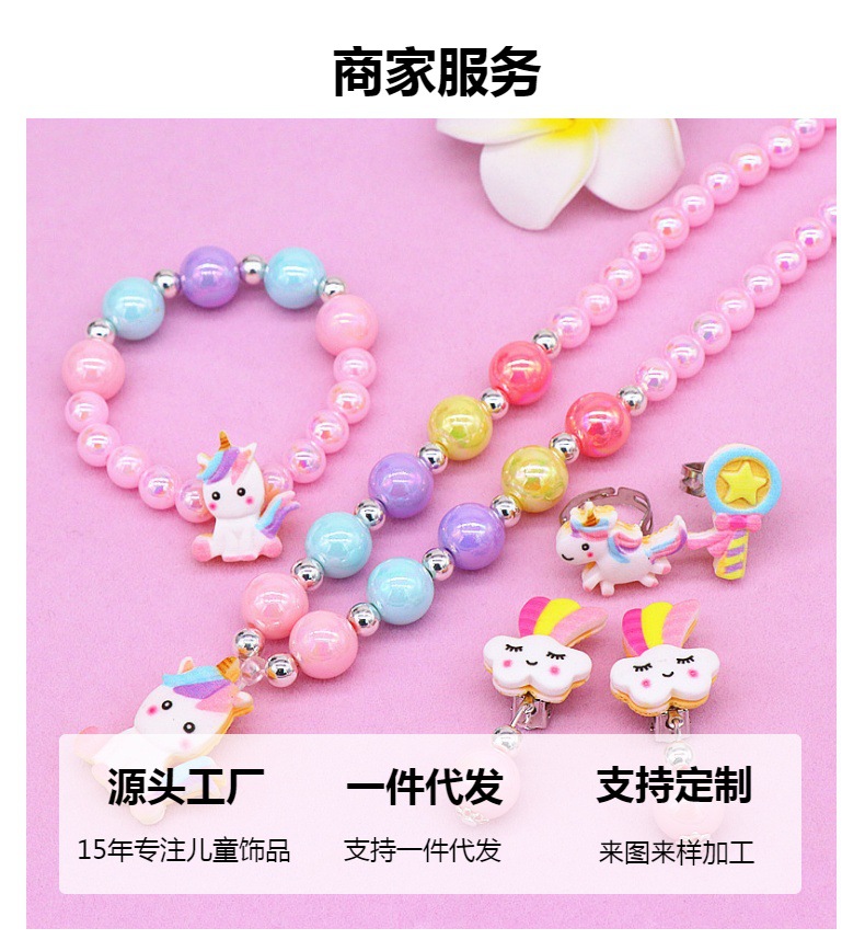 新商品子供ネックレスブレスレットクロスボーダー可愛いユニコーン虹ネックレス女の子アクセサリーセット