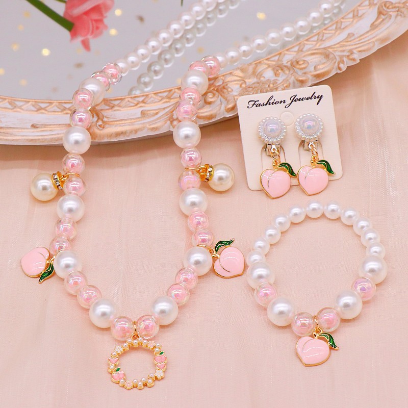 韓国版の甘い流行の子供のアクセサリーのビーズのネックレスのブレスレットの2セットの子供の真珠のネックレスのブレスレットのセット