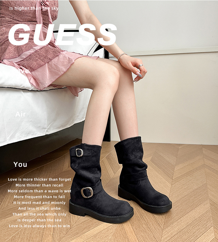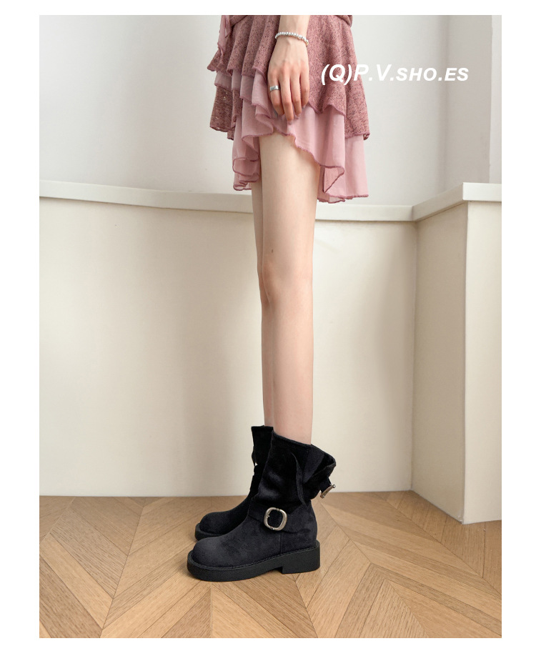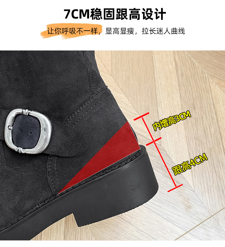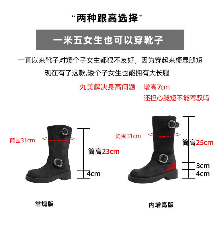 2025夏秋新款可翻领两穿内增高复古绒面时装圆通西部靴百搭中筒短