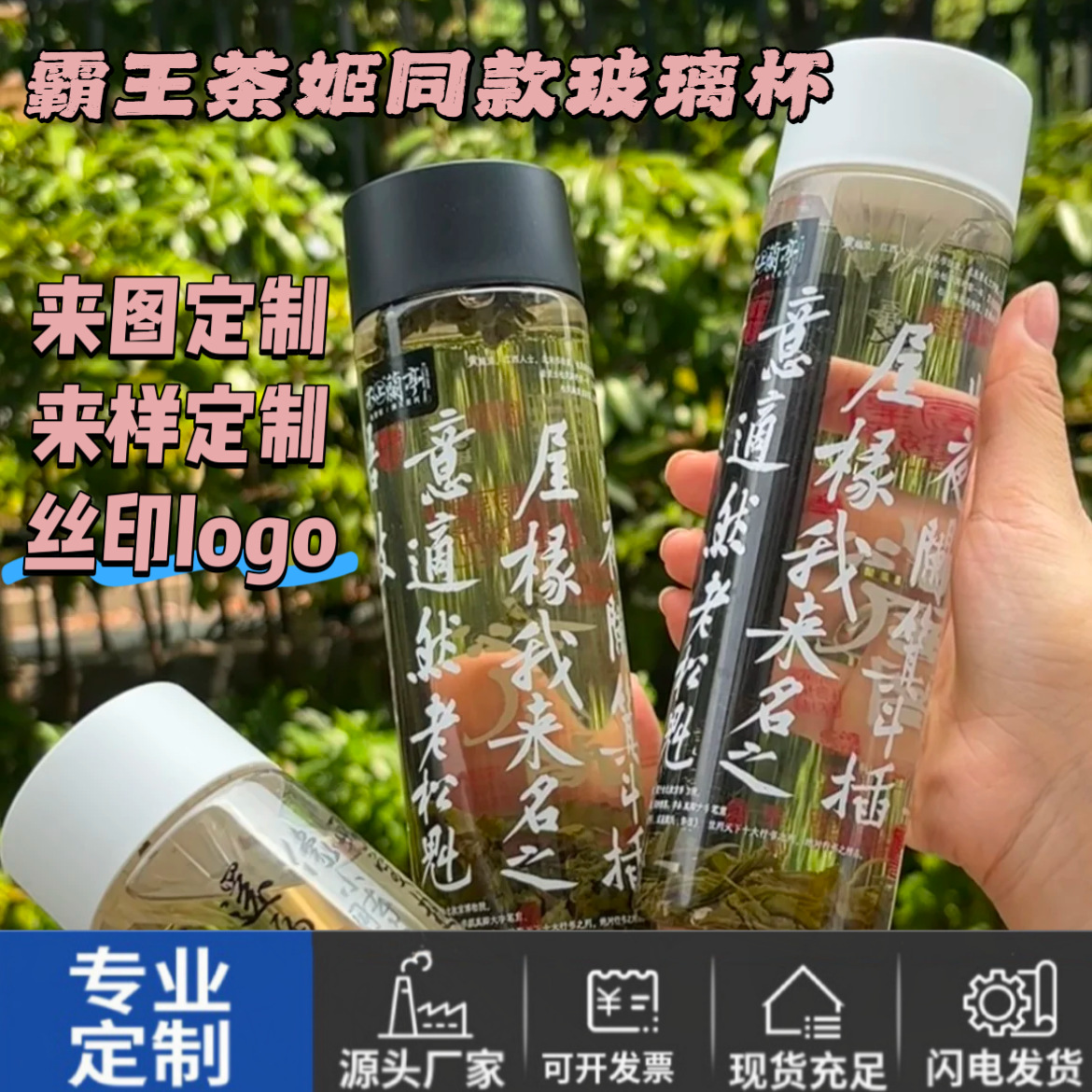 卸売ブランドの同じスタイルのガラス夏水出し茶飲料ボトル新しい中国茶飲料ガラスボトルはロゴで印刷できます