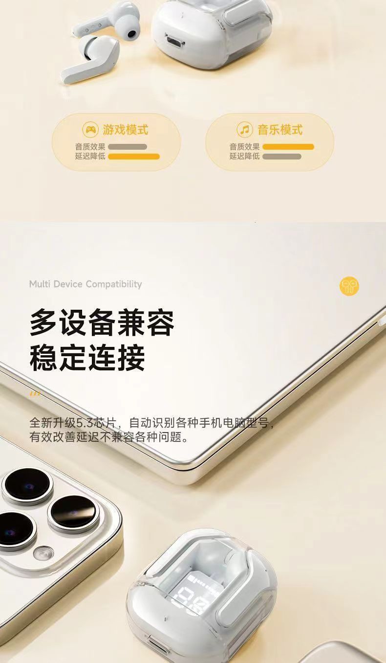 air31透明一代HK3跨境新款air39透明二代HK6 数显TWS入耳蓝牙耳机