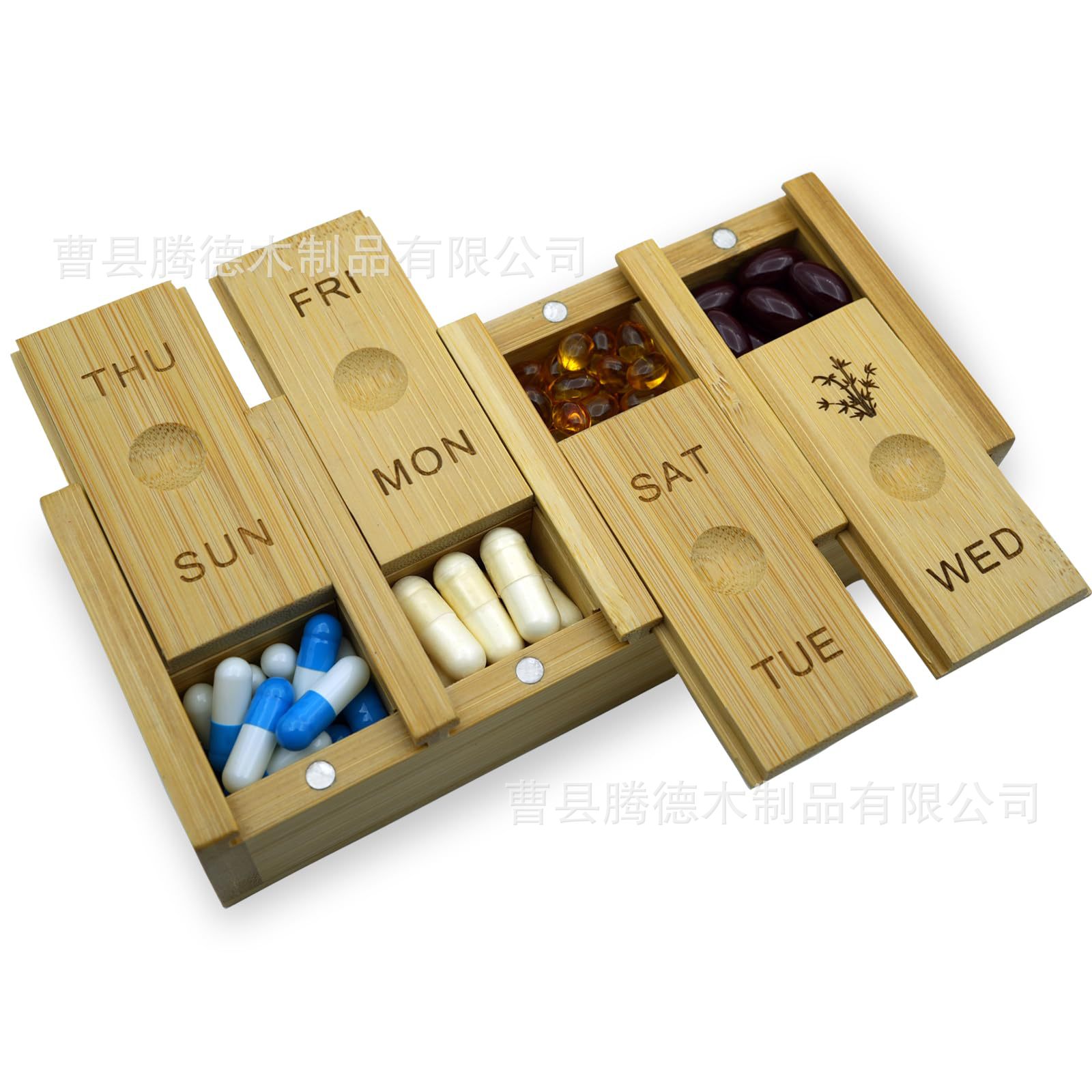 竹製薬用丸薬ボックス分割フォルダー毎週の丸薬ボックス無垢材の丸薬分類ボックス木製製薬毎週の丸薬収納ボックス