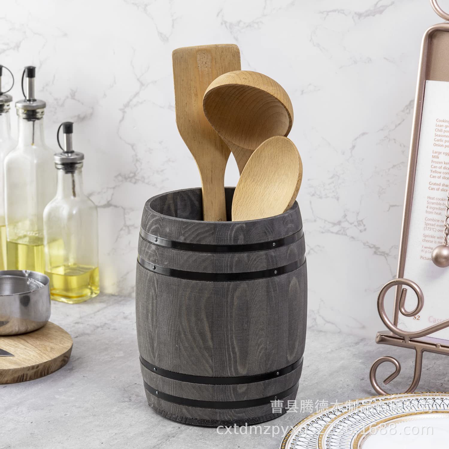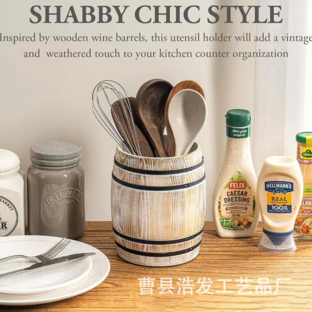 跨境木质餐具盒酒桶形刀叉筷子餐具收纳架厨房台面餐具整理盒笔筒
