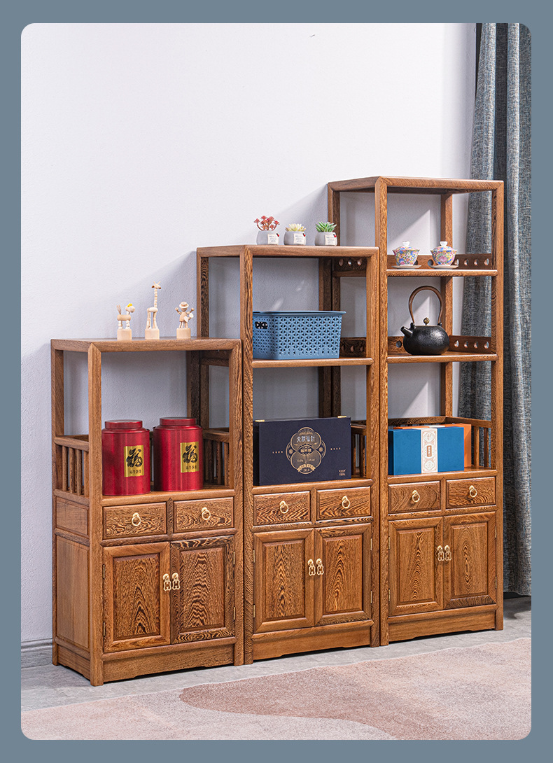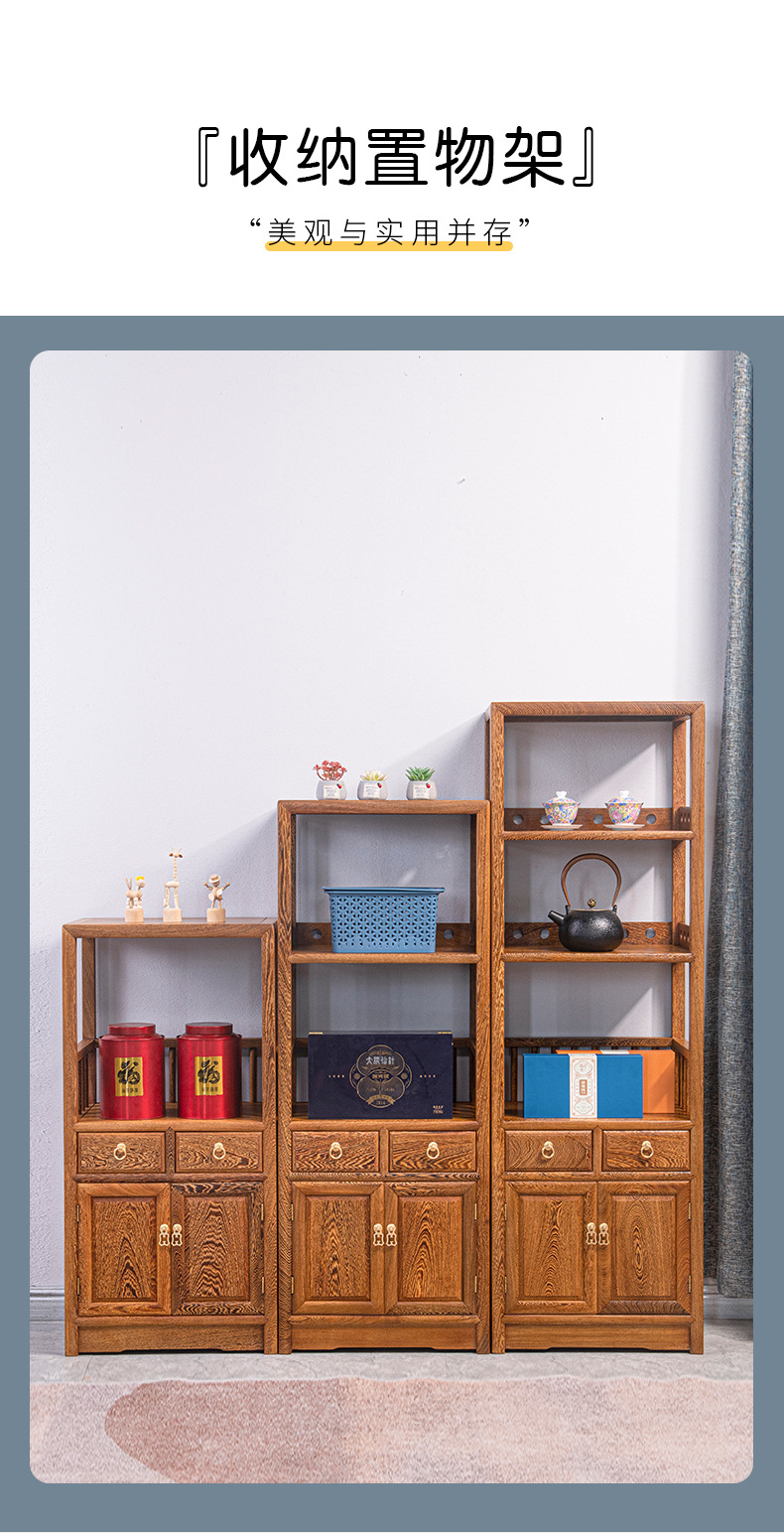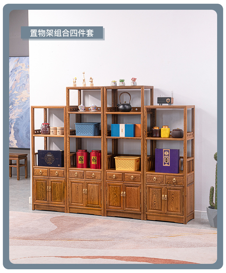 Yiming Tianxia キンダーバラザボガラック新しい中国風無垢材ディスプレイラックアフリカ小葉ローズウッド収納ラック