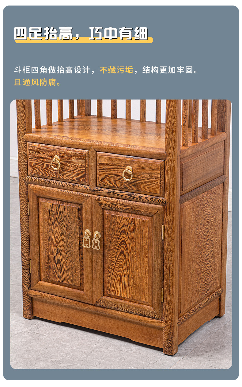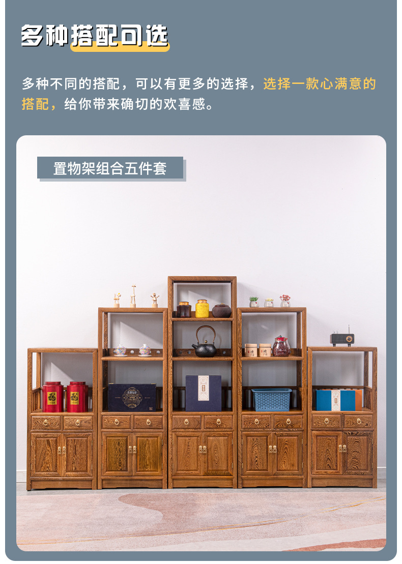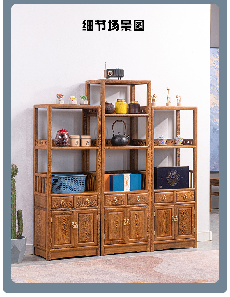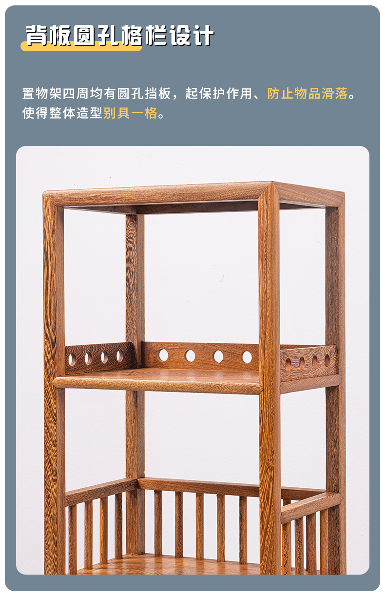 Yiming Tianxia キンダーバラザボガラック新しい中国風無垢材ディスプレイラックアフリカ小葉ローズウッド収納ラック