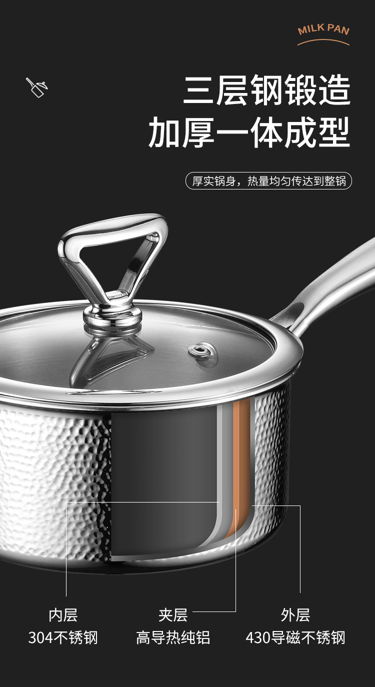 304 三層鋼ハンマーパターン家庭用多機能ミルクポットシングルポット栄養補助食品多目的ボイラーユニバーサル