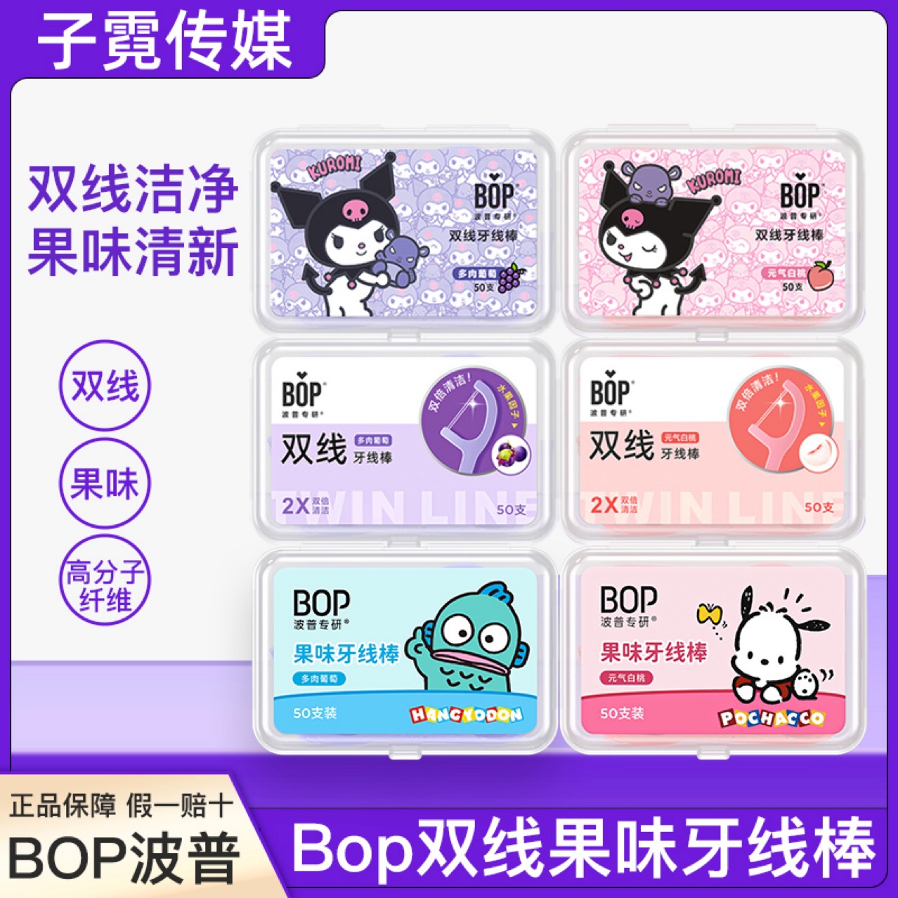 BOP デンタルフロス フルーティー サンリオ ジョイント ダブルライン 細いスティック 箱入り ファミリーパック つまようじ ライン ポータブル かわいい 女の子