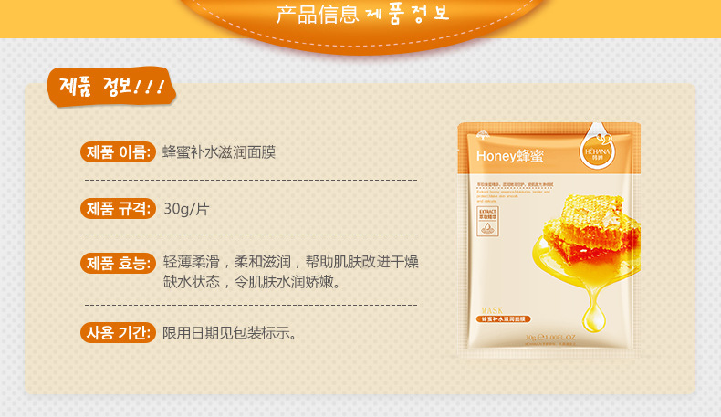 韓国の蜂蜜は水を補ってマスクを潤します。