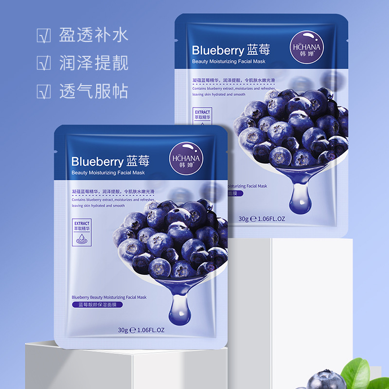 韓婵ブルーベリー美顔補水マスクシルク保湿スキンケア化粧品卸売り