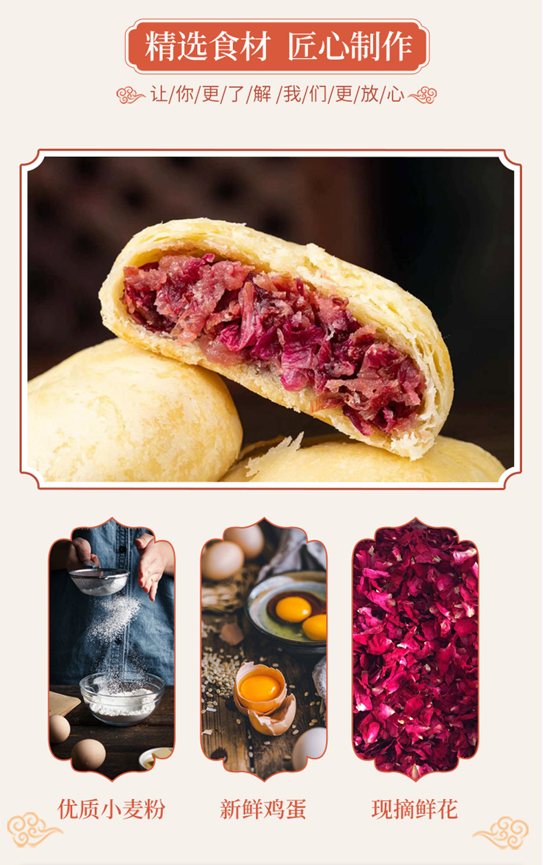 年物雲南の特産のバラの卵黄のショートニングの箱の卸売りの菓子の軽食のお菓子の卵黄のショートニングの美食