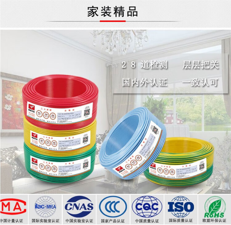 朝陽電線ZB-BV平方難燃電線国標単芯線銅芯ソケット線2色1.5平方1