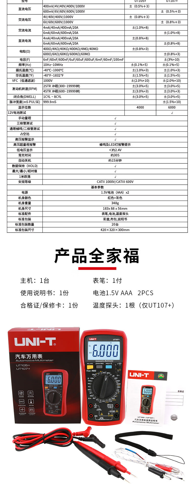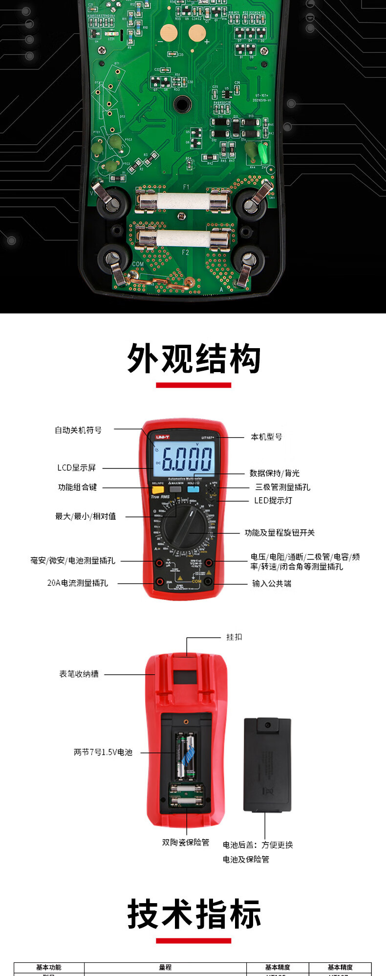 ウリードUNI-T UT105手持ち式自動車マルチメーター修理表