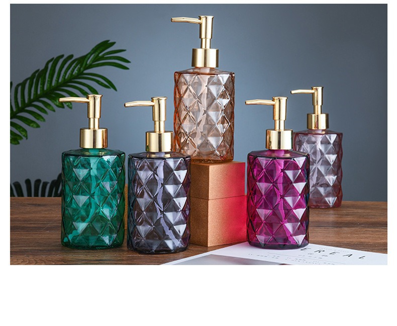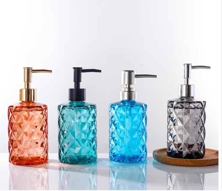 軽い贅沢な手洗い液の瓶のダイヤモンドの乳液の瓶は圧力式の入浴剤を押して瓶のシャンプーのガラスの空の瓶を分けて卸売りします。