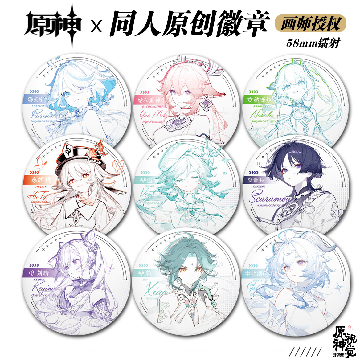 画手公認【】25種類の新作原神FESレーザーバッジ、散兵、魈、空、温迪のバッジ