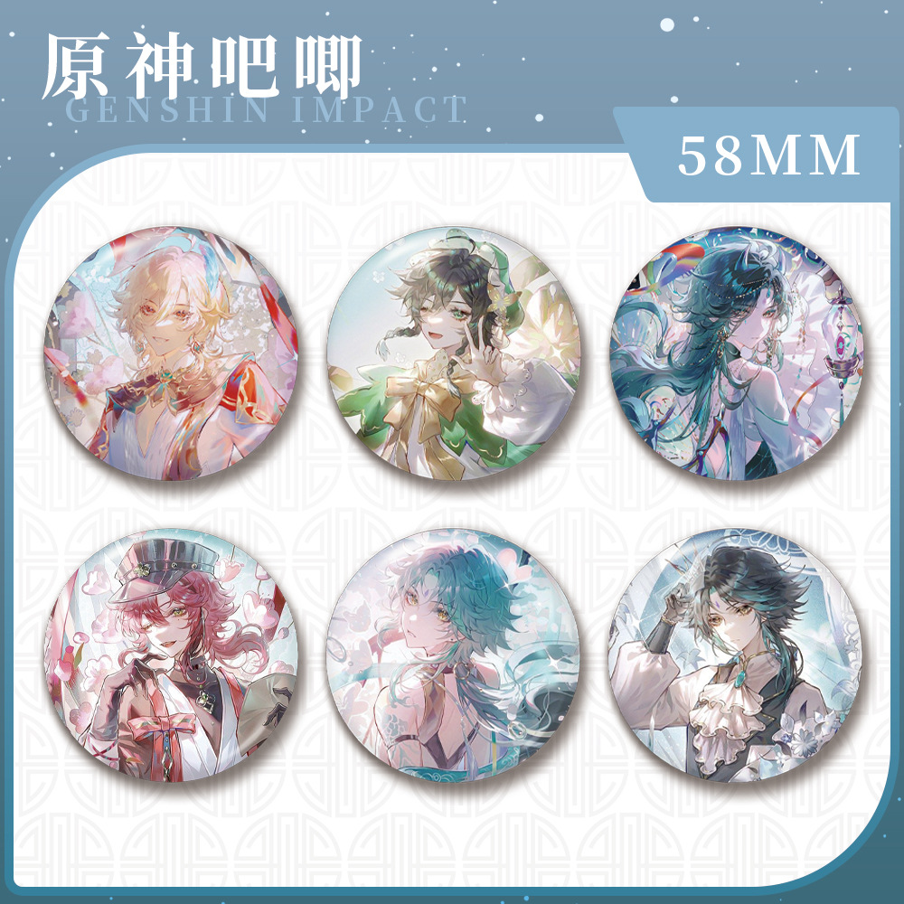 原神游戏周边温迪提纳里流浪者公子魈钟离卡维58mm镭射吧唧徽章