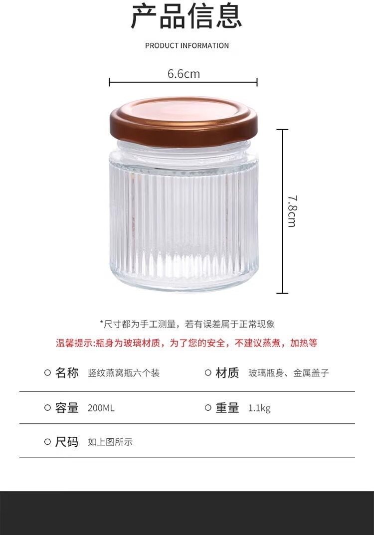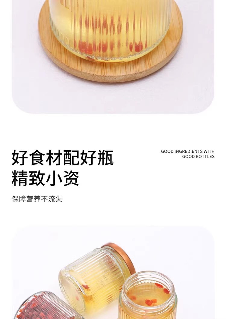 ツバメの巣のサブボトルは、蒸して垂直パターン、新鮮な魚の浮き袋の煮込み、多機能ガラスボトル、家庭用ピクルスボトル、密封ガラス瓶として使用できます。