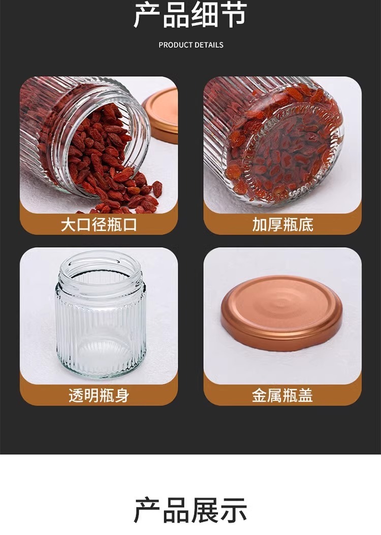 縦紋新鮮煮込み花糊ミルク冷凍キャビア煮込み味噌汁密封缶蜂蜜魚糊分注ガラス瓶高温に耐える