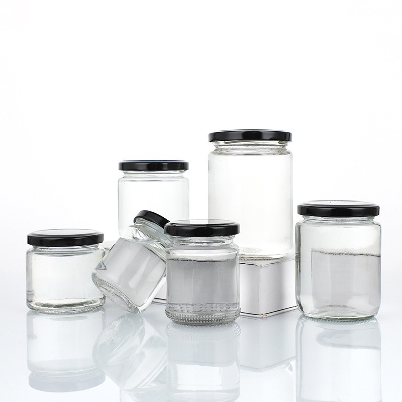 卸売り食品充填蒸煮可能なガラス密封貯蔵タンクカスタムガラス缶六稜ガラス缶蓋付き