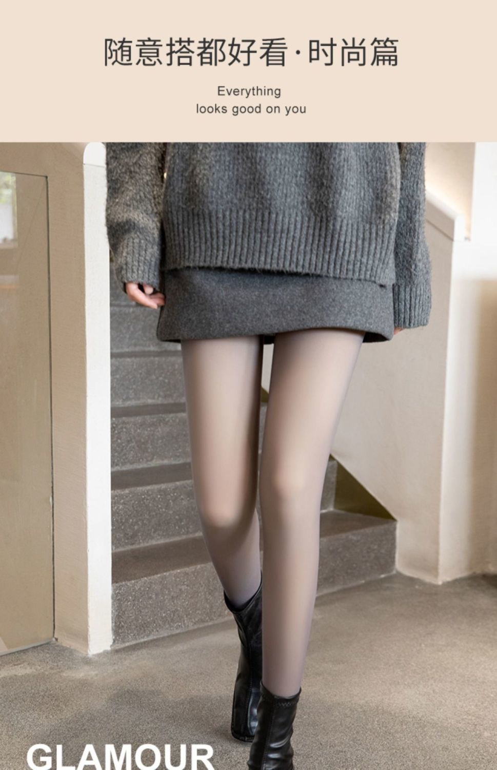 源春秋のレギンスとベルベットの女性一体の偽透肉が厚くなって保温して肌のズボンの空姉の灰色の黒い糸が代行します。