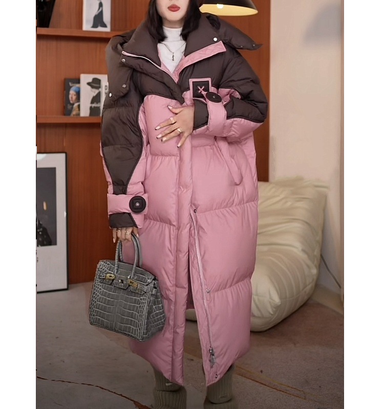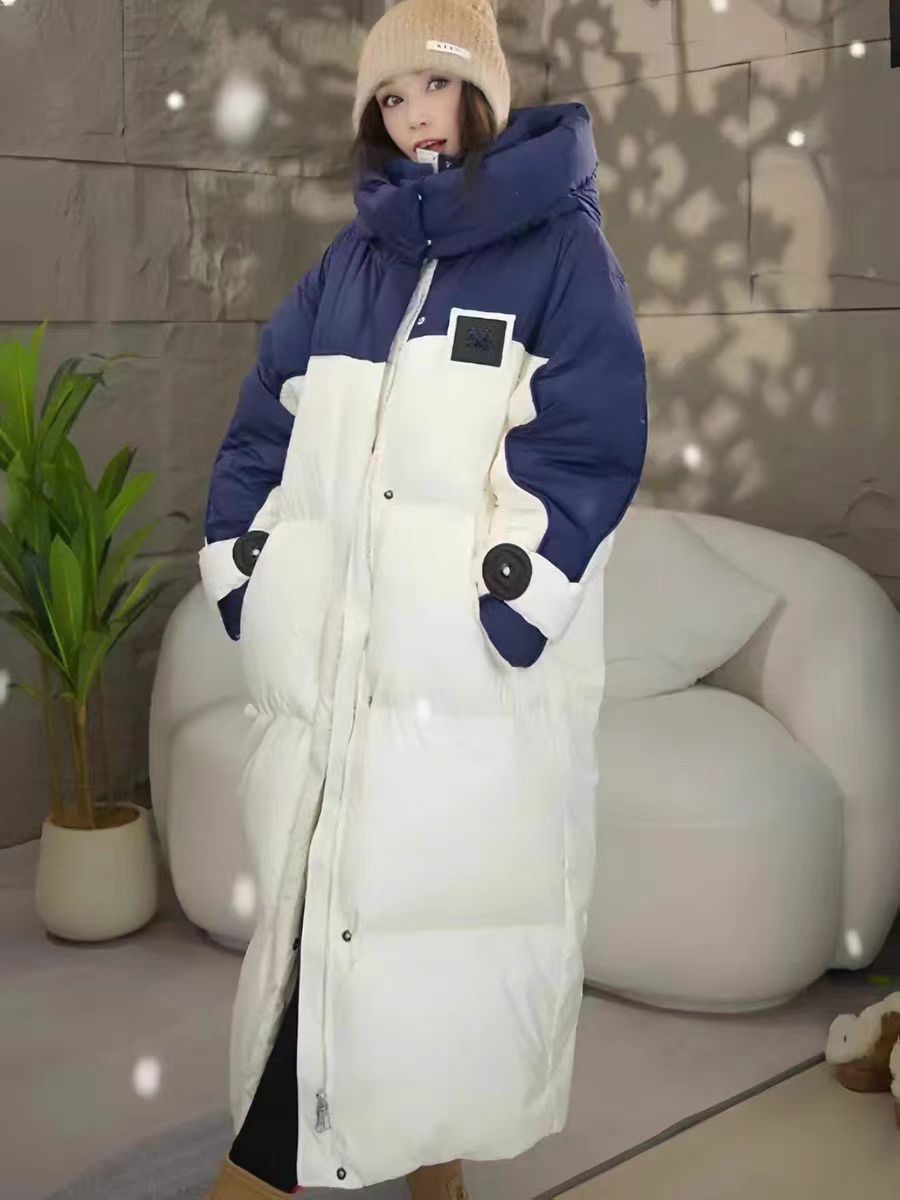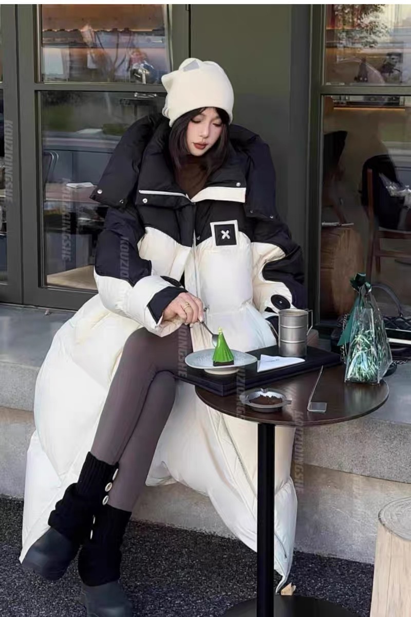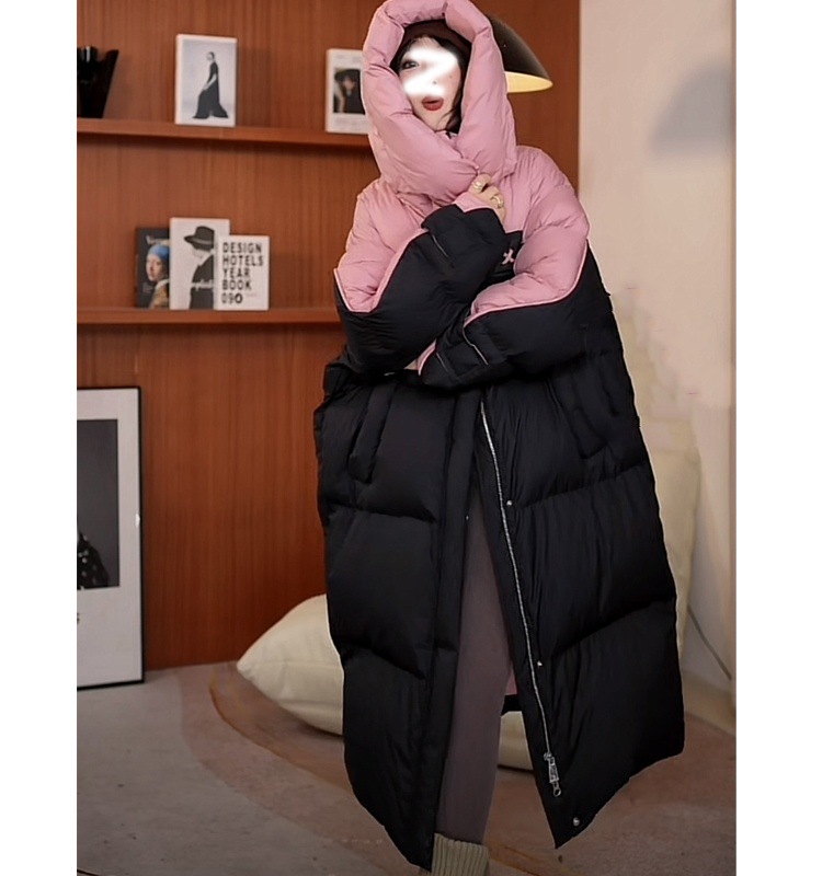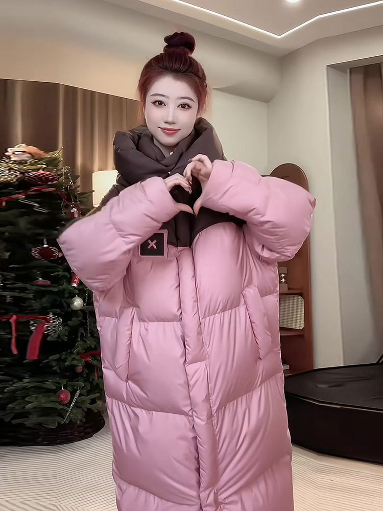 2025年冬の新型韓国版綿入れコートは帽子の中の長さまで厚くて暖かい綿服のゆったりとした色合わせコートです。